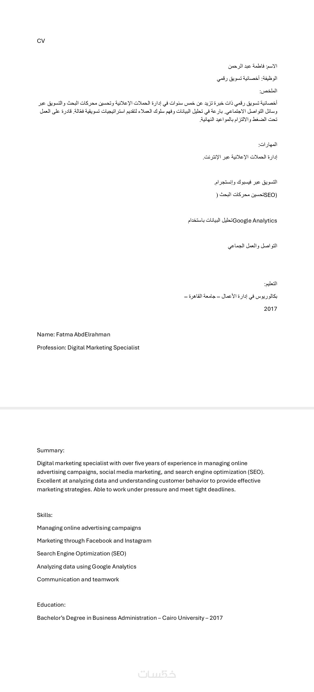 أقدم خدمات ترجمة احترافية بين اللغتين العربية والإنجليزية، مع مراعاة المعنى والسياق والثقافة اللغوية.