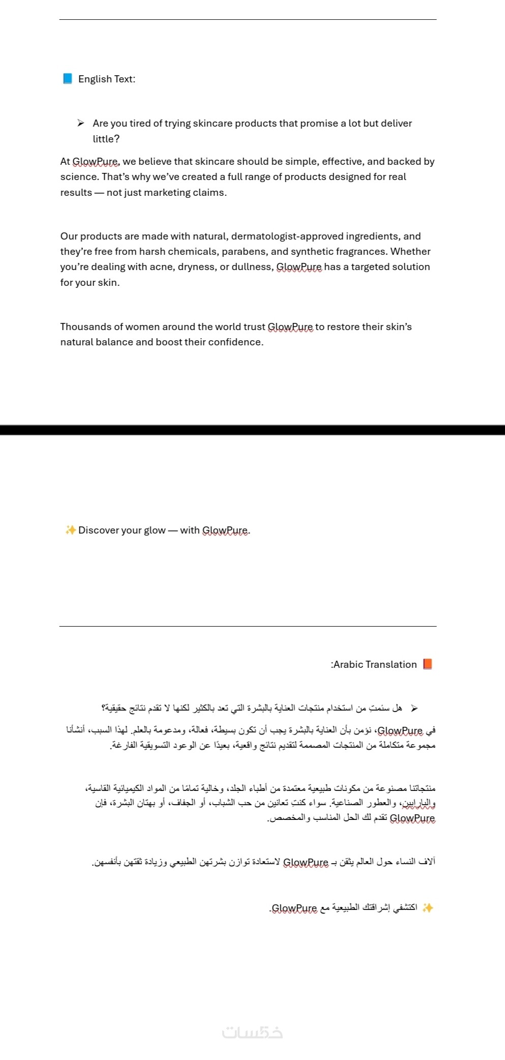 اسمي إسراء، مترجمة وكاتبة محتوى، أقدم لك خدمة ترجمة من الإنجليزية للعربية والعكس بأسلوب احترافي يحافظ على المعنى والسياق الأصلي دون أي ترجمة آلية.