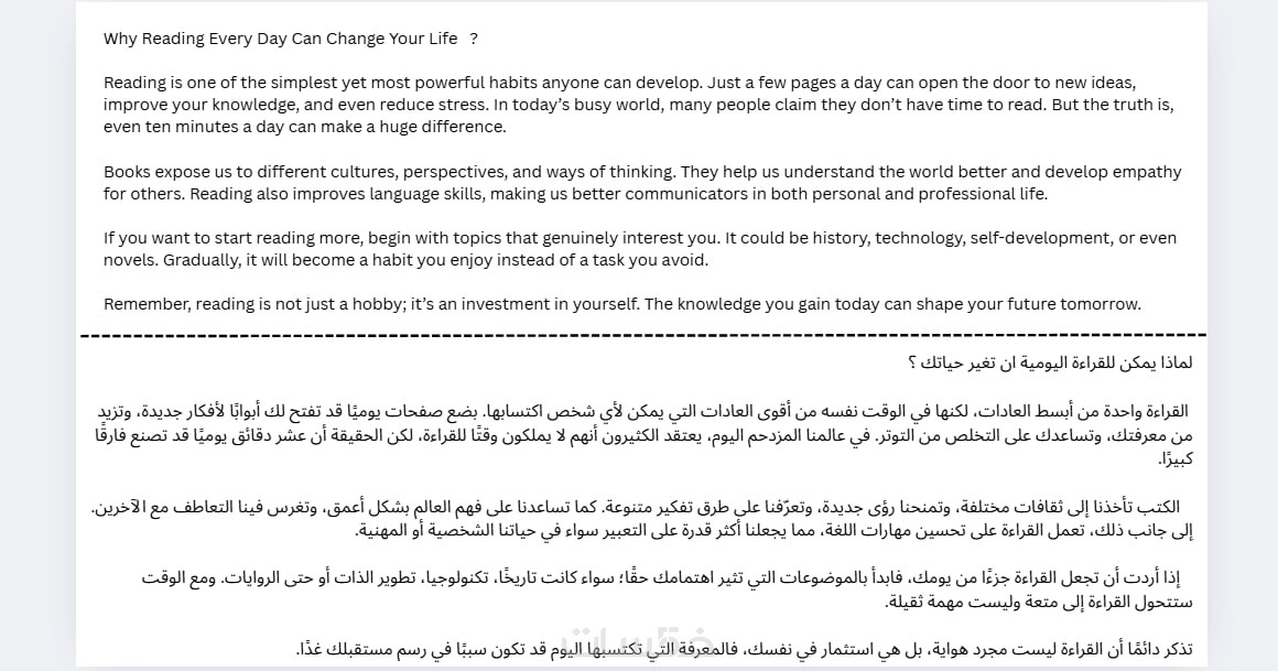 ترجمة جميع المقالات والنصوص من العربية للانجليزية والعكس