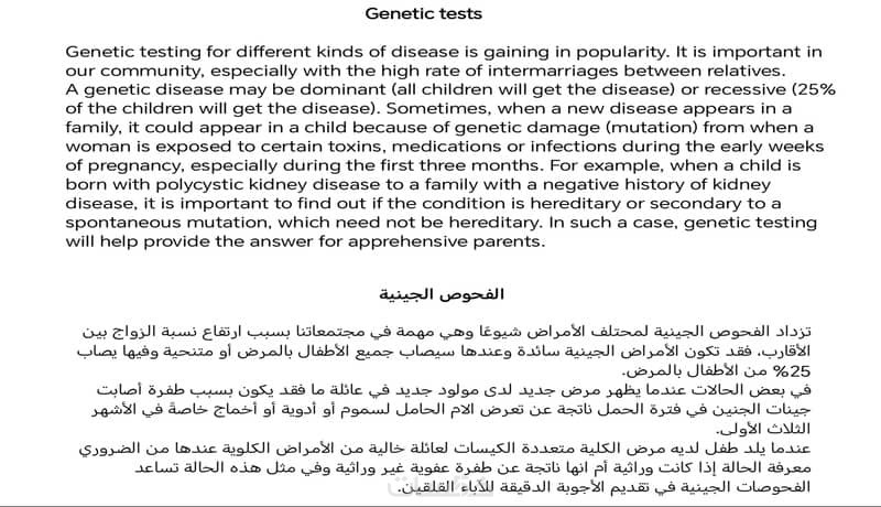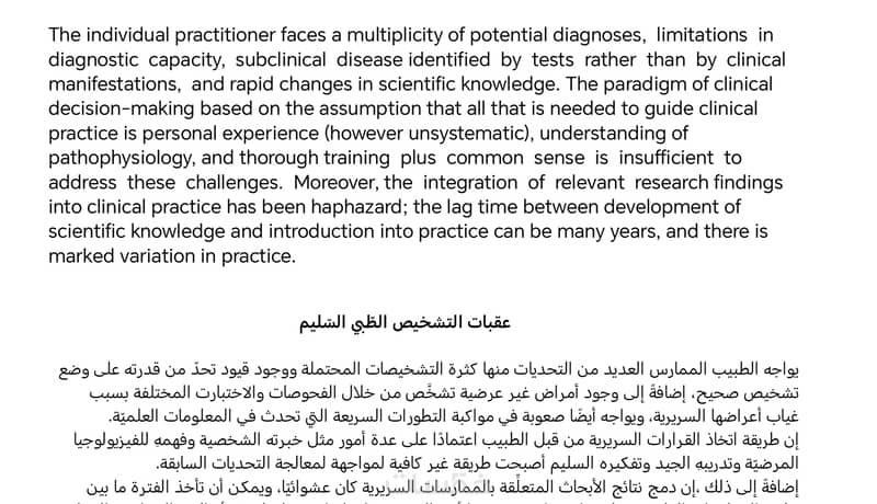 • لدي خبرة في ترجمة المحتوى الطبي والعلمي ضمن مشاريع محلية وأكاديمية، مع الالتزام بالدقة والوضوح في كل عمل.