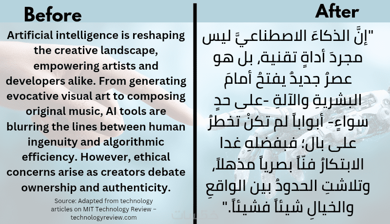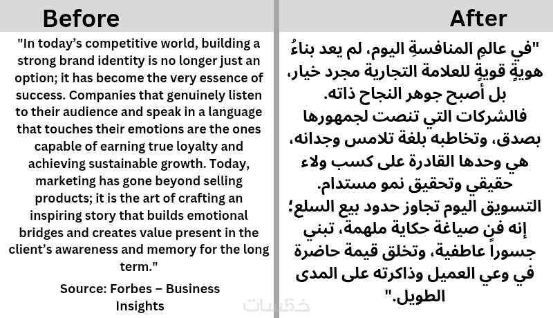 ما الذي يميز هذه الخدمة؟ترجمة سياقية (Contextual): أهتم بنقل المعنى والمقصود وروح النص، لا مجرد ترجمة حرفية جافة تضيع معها الرسالة الأصلية.صياغة لغوية سليمة: أضمن لك نصاً عربياً (أو إنجليزيًا) متماسكاً، ينساب بسلاسة وكأنه كُتب بهذه اللغة من البداية.خلو من الأخطاء: تدقيق إملائي ونحوي وعلامات ترقيم دقيقة، ليكون النص جاهزاً للنشر فوراً دون الحاجة لمراجعة خلفي.تطويع المحتوى (Localization): القدرة على تكييف المصطلحات لتناسب الجمهور المستهدف (سواء كان محتوى تسويقي، أكاديمي، أو عام).تنسيق احترافي: أسلّمك العمل بنفس تنسيق وترتيب ملفك الأصلي (Word أو PDF) لضمان الاحترافية والوضوح.السرية التامة: أتعامل مع كافة ملفاتك ومعلوماتك بخصوصية وأمانة مطلقة.