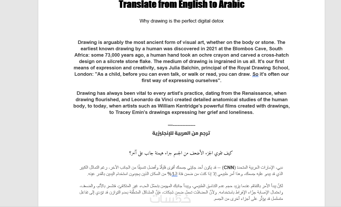 أقدّم خدمة ترجمة عامة من اللغة الإنجليزية إلى العربية والعكس، مع الحفاظ على المعنى الأصلي للنص وسلامة اللغة.