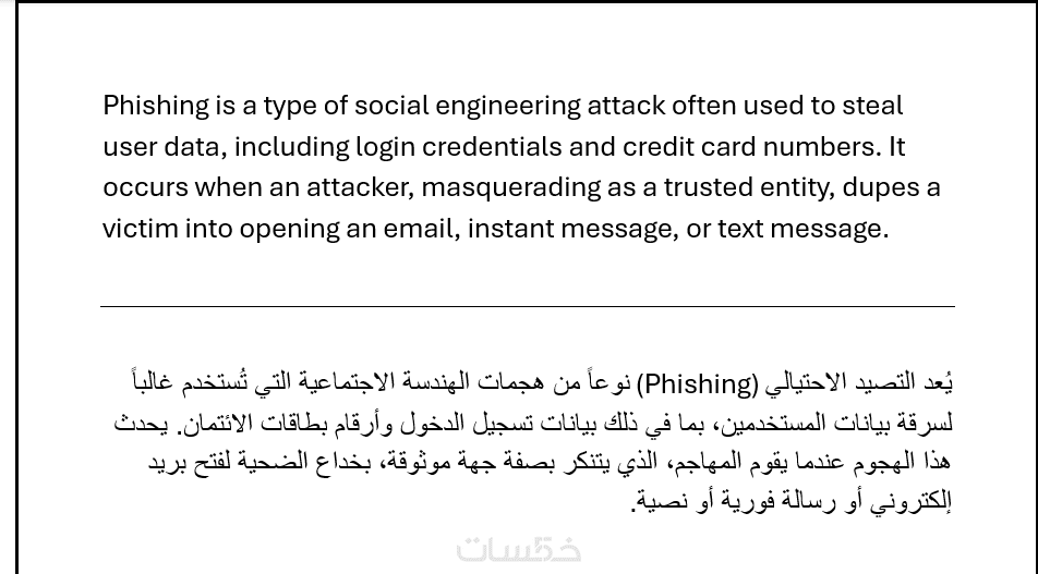 4- تنسيق احترافي: استلام الملف بنفس تنسيق الملف الأصلي (Word أو PDF) ليكون جاهزاً للاستخدام فوراً.