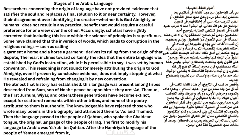ترجمة تخصصية تاريخية حول أصل اللغة العربية وتطورها عبر الزمن.