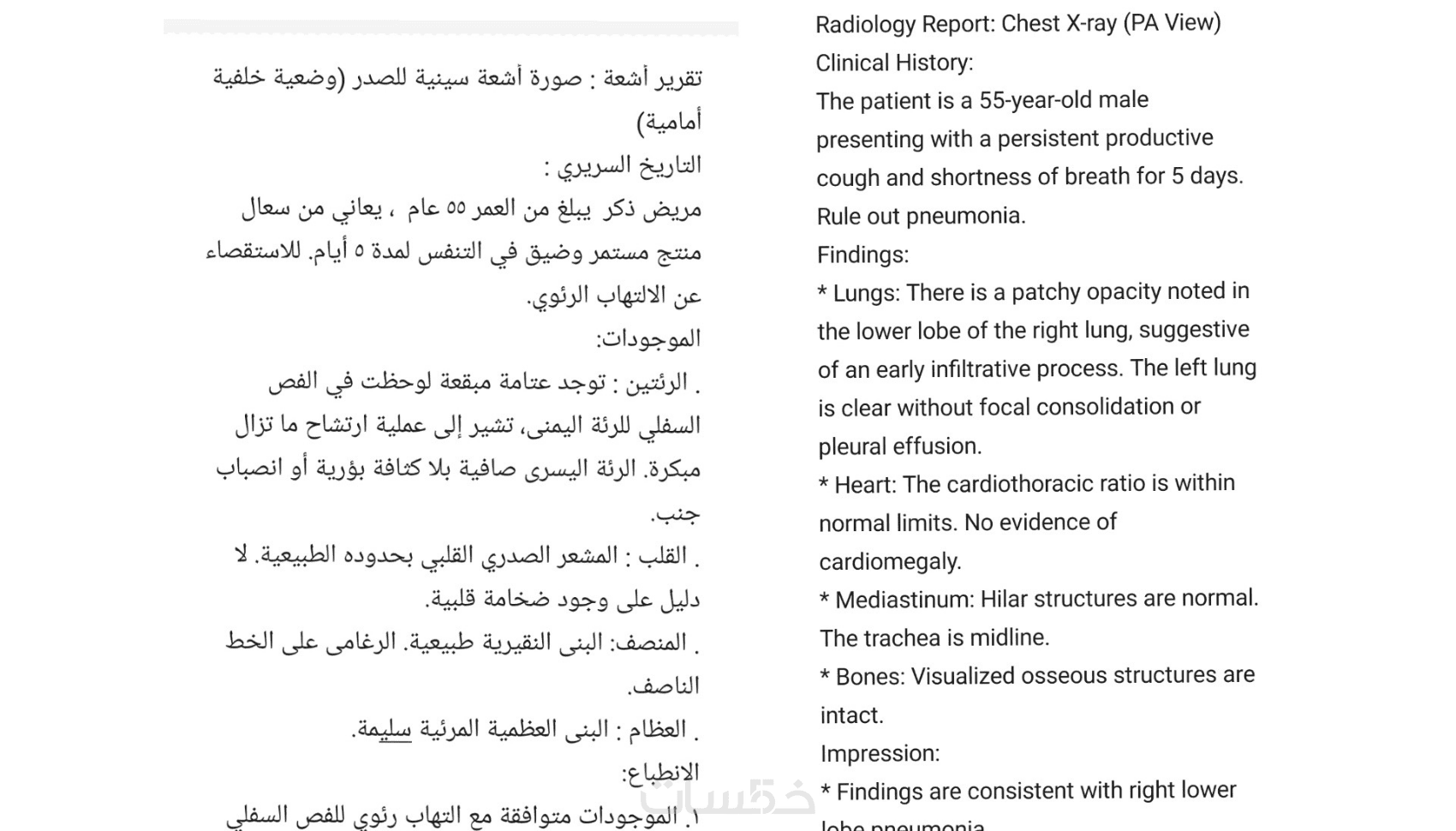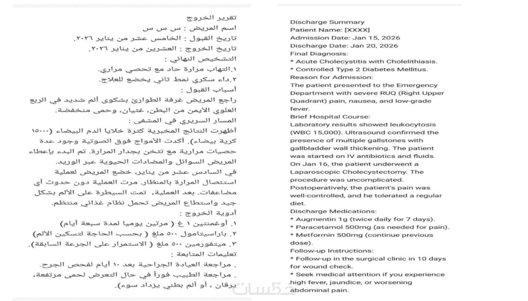 أقوم بالحفاظ على رصانة المعنى و التدقيق اللغوي والإملائي ومراعاة هيكلية التقرير، وبالتأكيد الحفاظ على السرية التامة لبيانات المرضى.