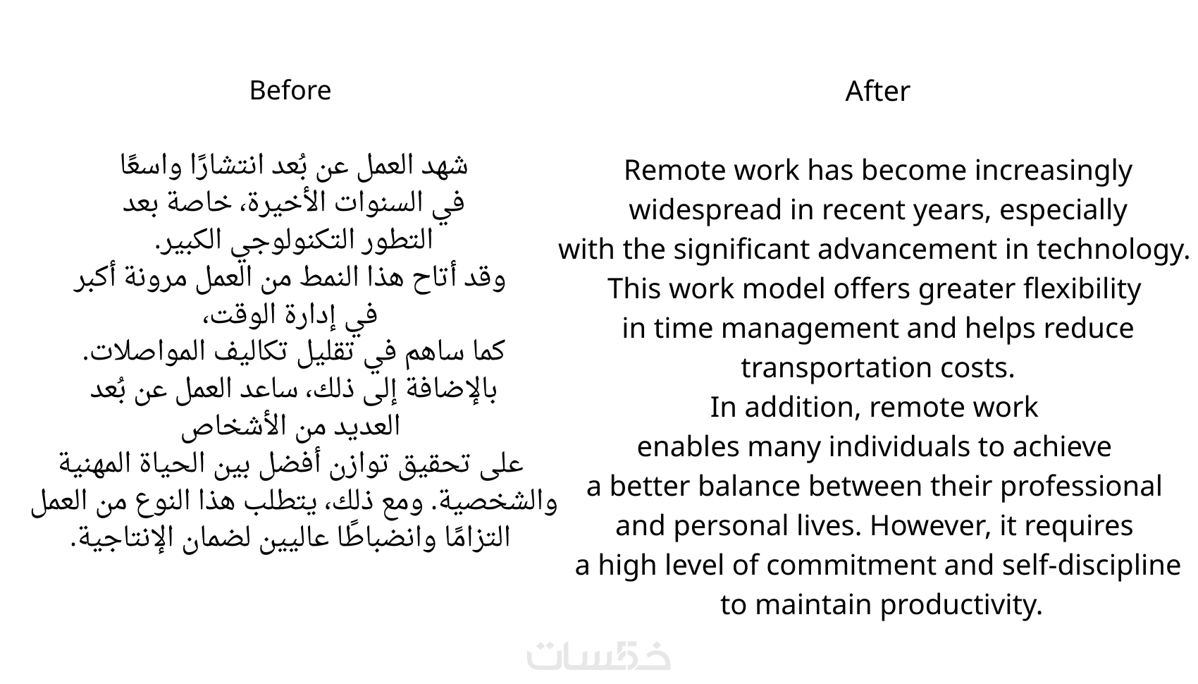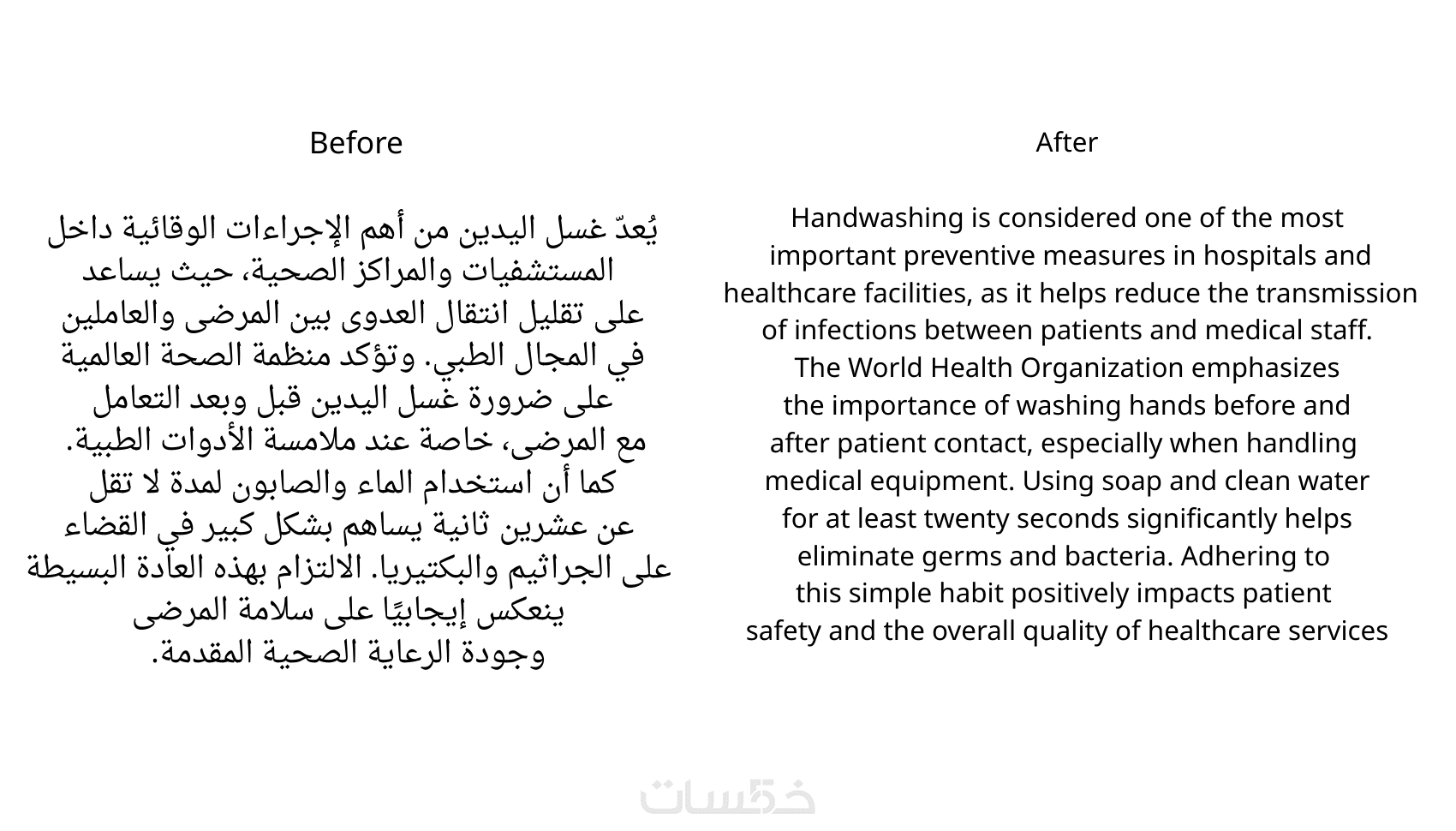 تشمل الخدمة ترجمة النصوص والمقالات والمستندات، مع إمكانية العمل على ملفات Word وPowerPoint.