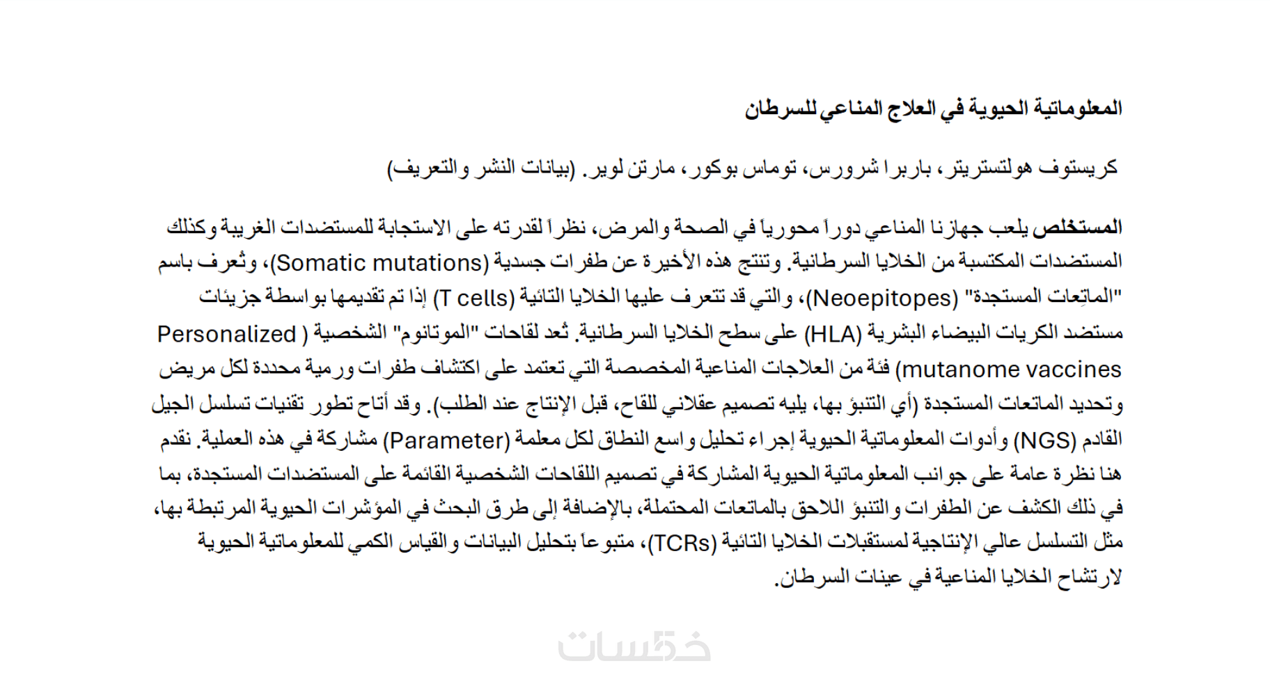 أقدّم ترجمة طبية وعلمية احترافية من الإنجليزية إلى العربية مع الحفاظ على المصطلحات العلمية والدقة الأكاديمية.