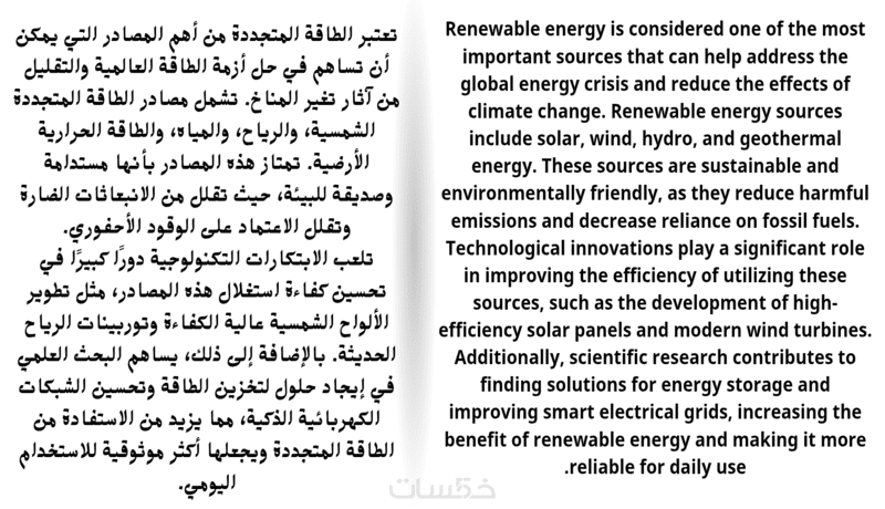 النص سيكون مكتوبًا بأسلوب لغوي صحيح، مع قواعد نحوية وإملائية سليمة، سواء كان بالعربية أو الإنجليزية.