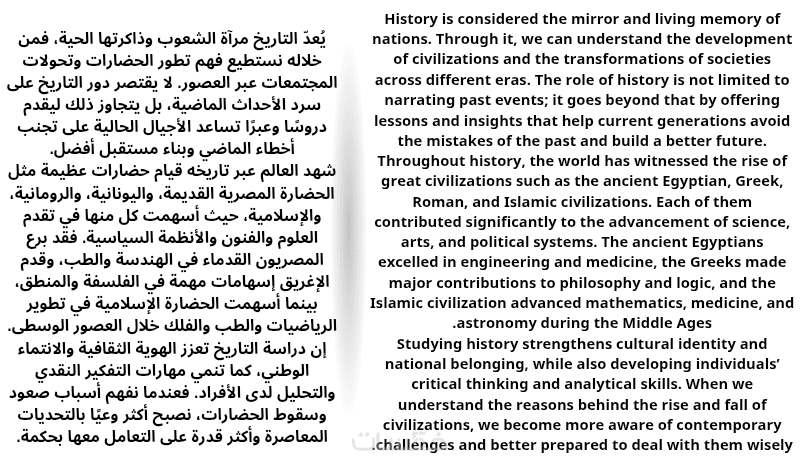 ستحصل على نص مترجم بعناية، مع نقل المعنى بدقة وبدون أخطاء في الترجمة أو التشويه للمعنى الأصلي.