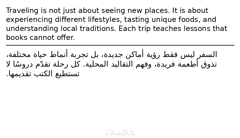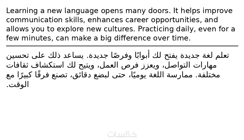 أقدم خدمة ترجمة من الإنجليزية إلى العربية والعكس مع مراجعة دقيقة قبل التسليم لضمان جودة عالية ونص واضح وسلس.