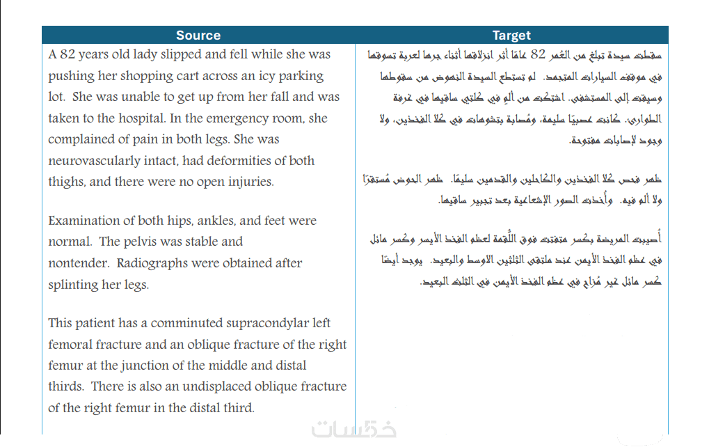 الدقة: الترجمة طبية متخصصة بناءً على خلفية إكلينيكية (بناءً على خبرتي في التمريض، يمكنني مواءمة النص ليكون إكلينيكياً للأطباء أو توعوياً للمرضى، يرجى تحديد الفئة المستهدفة.).