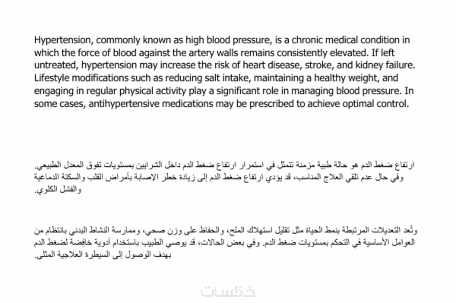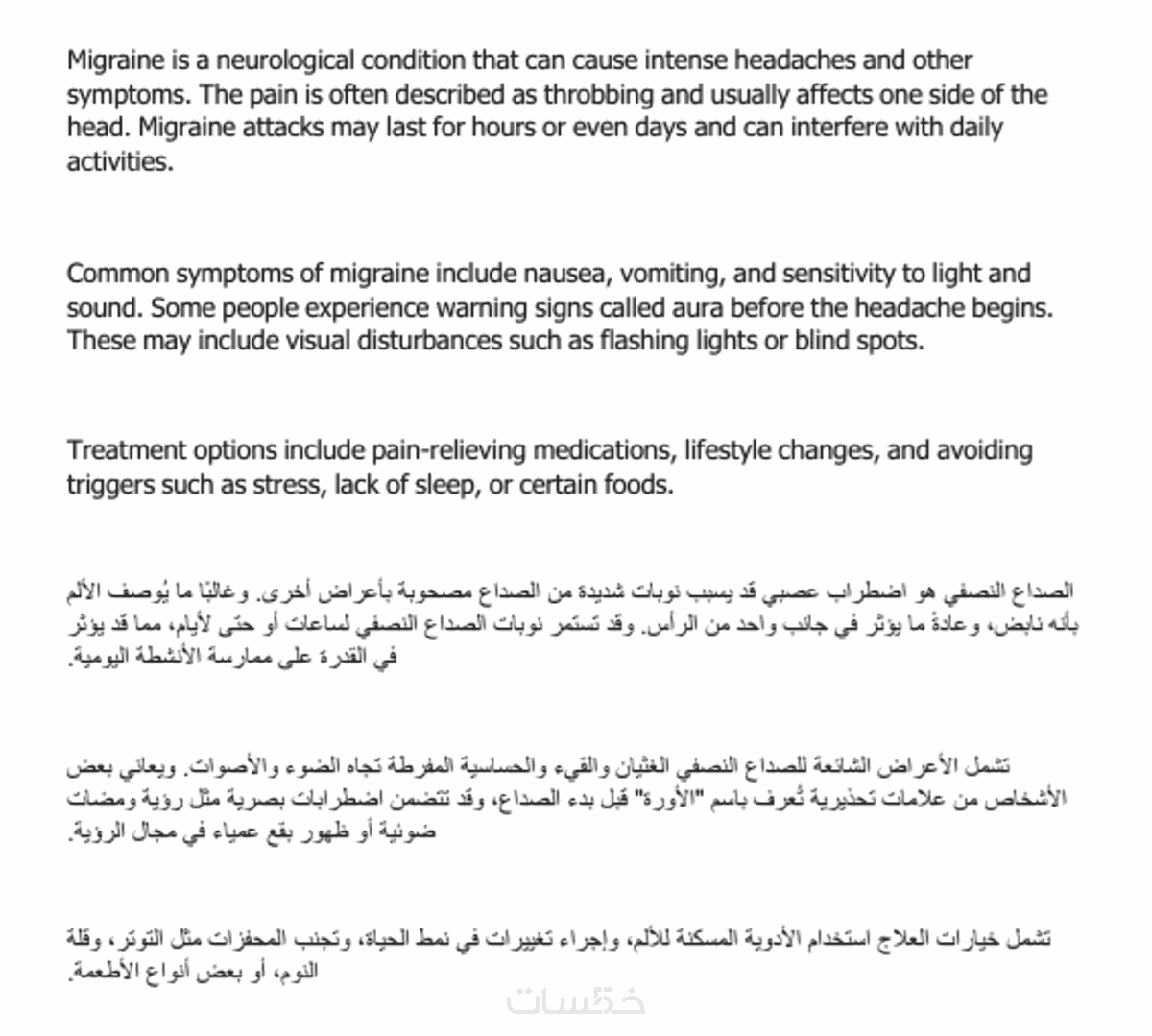 صياغة عربية طبيعية تناسب المجال الطبي للمحتوى.