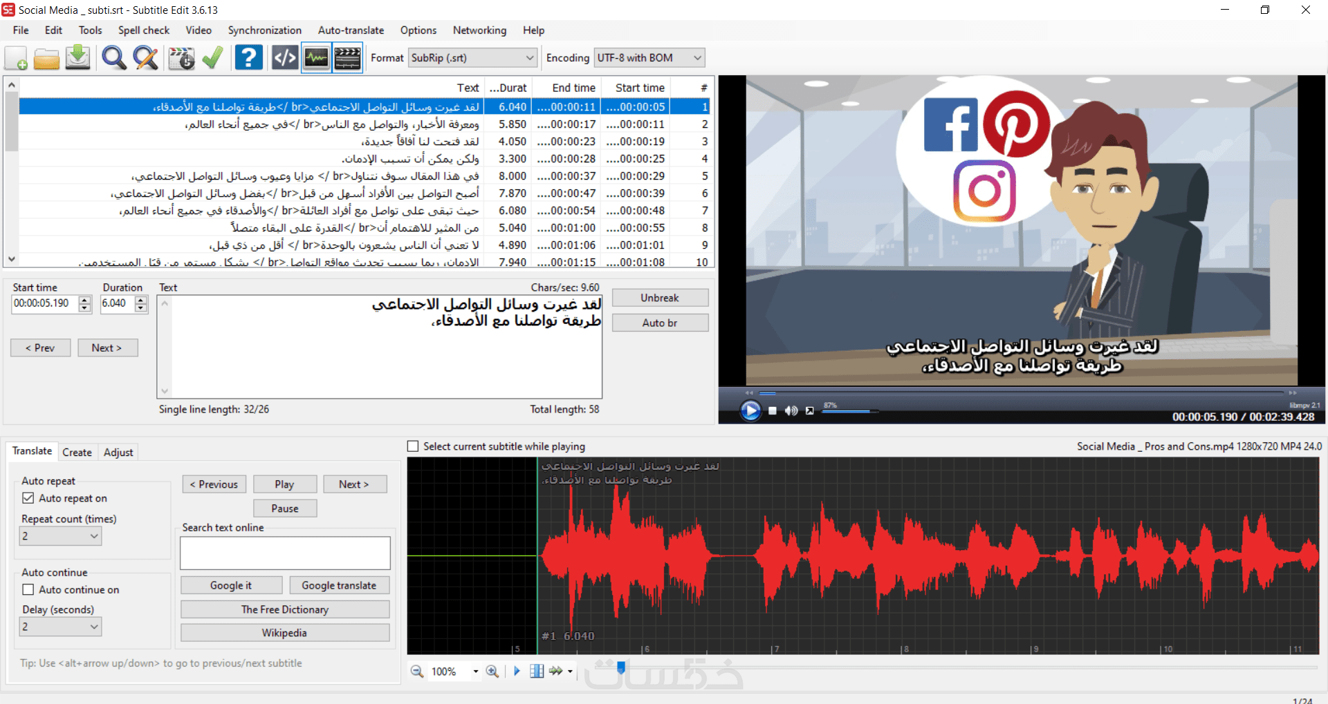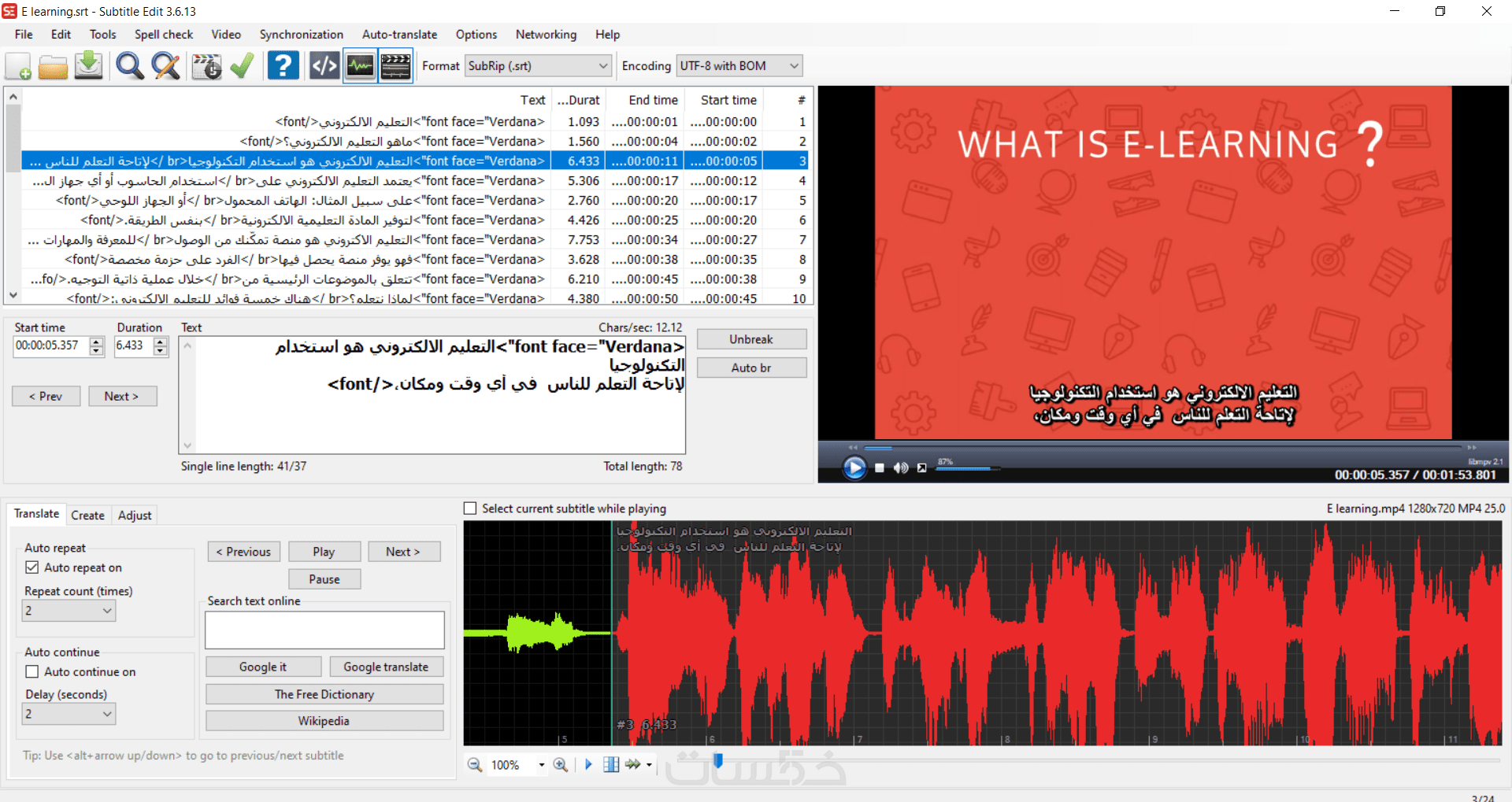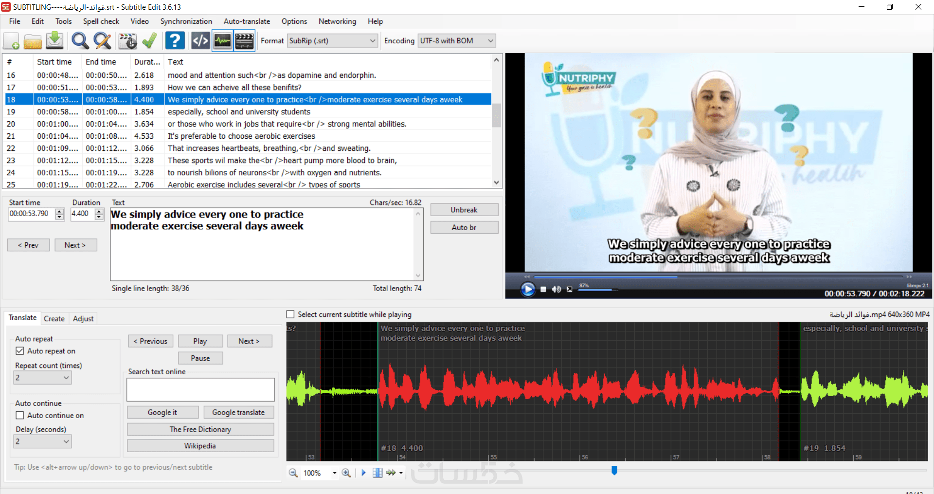 مراعاة الترجمة وفق إعدادات برنامج الترجمة srt file.