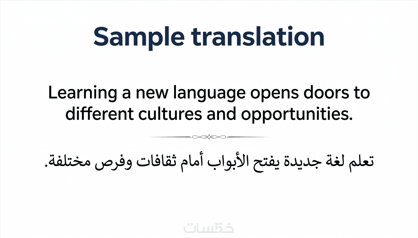 الخدمة تشمل ترجمة احترافية مع مراجعة لغوية للتأكد من خلو النص من الأخطاء.