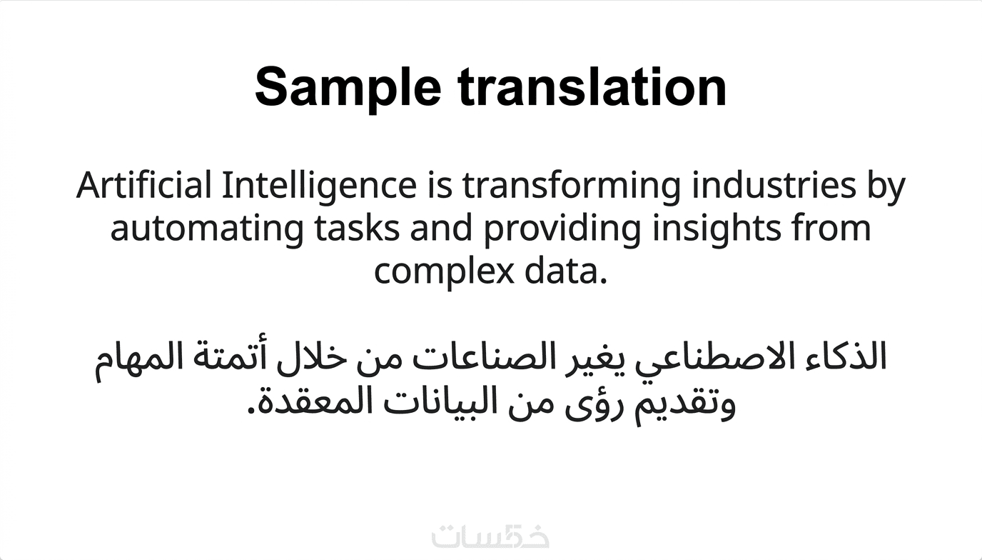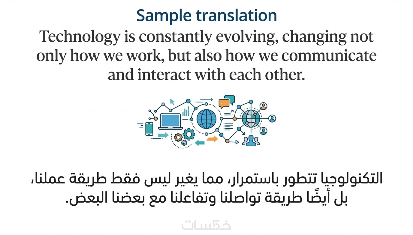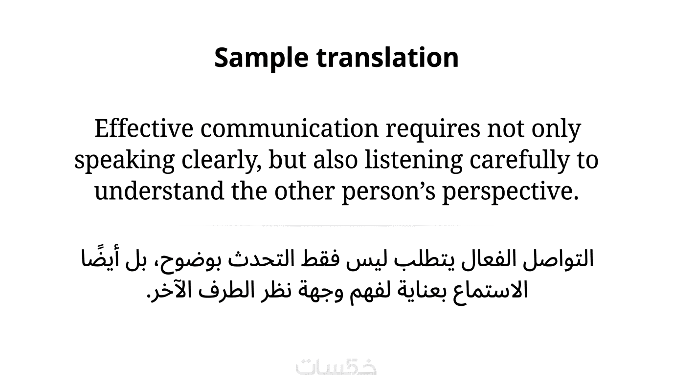 أربع صور جاهزة تعرض أمثلة حقيقية لترجمتي، بحيث يوضح أسلوبي ومهارتي في التعامل مع مختلف النصوص.
