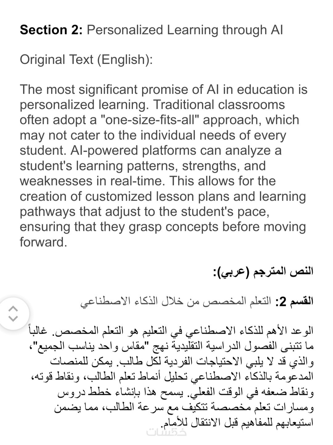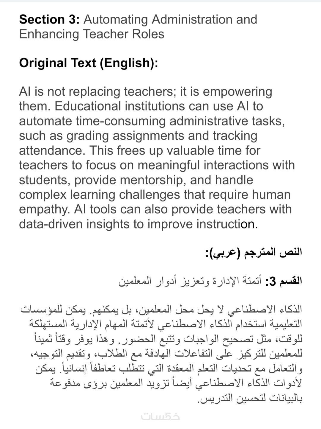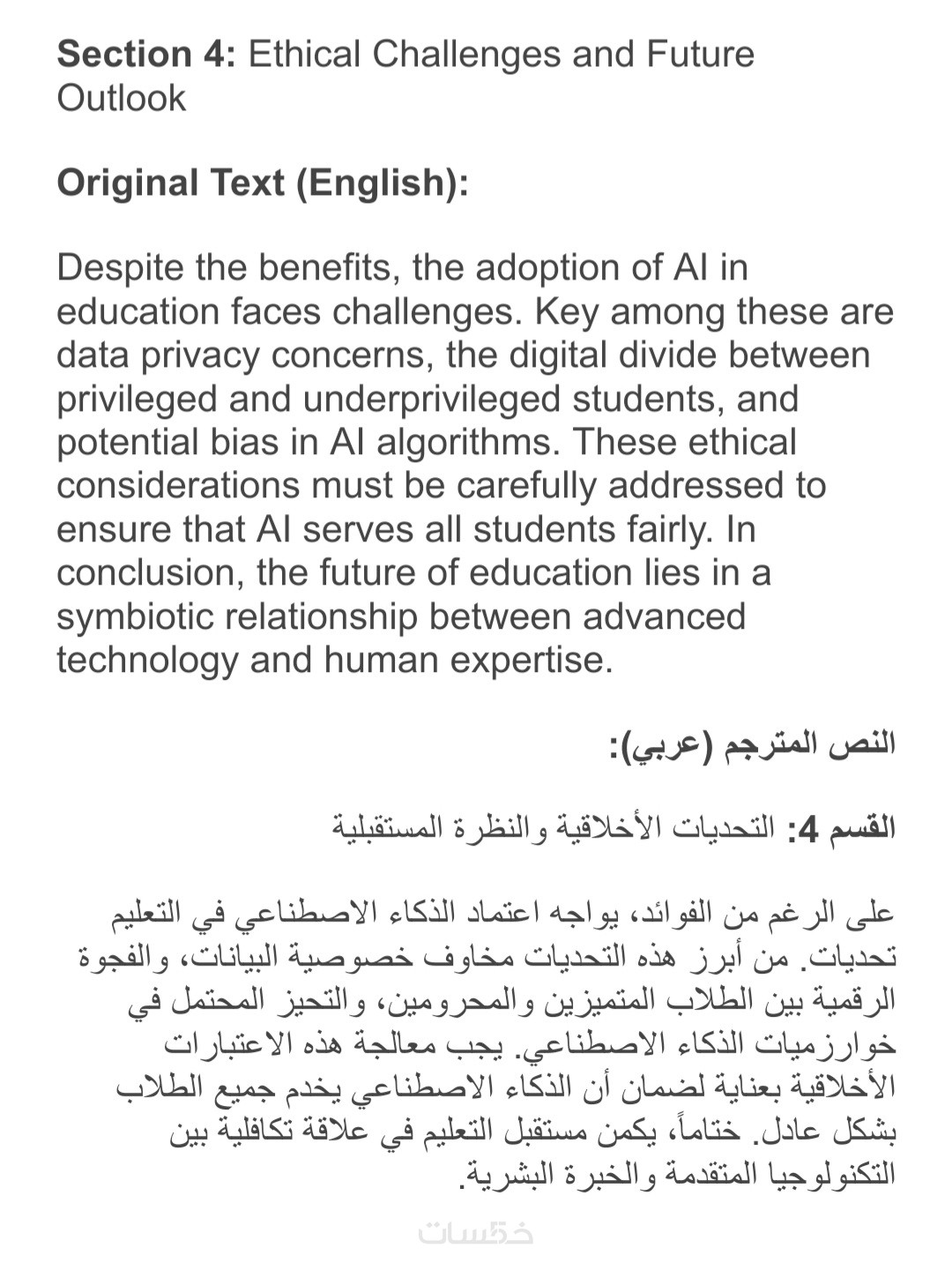 يحتوي على النص الأصلي والنص المترجم جنباً إلى جنب (أو حسب رغبتك)، مع تنسيق احترافي للعناوين والفقرات.