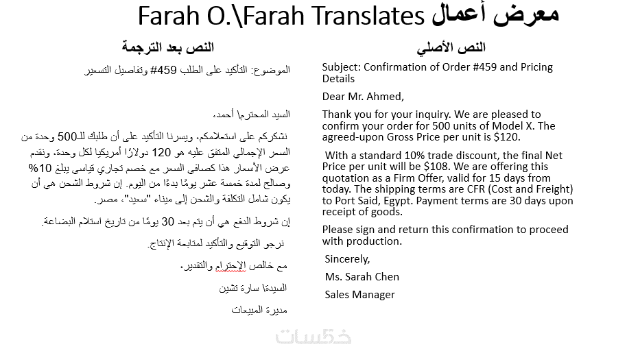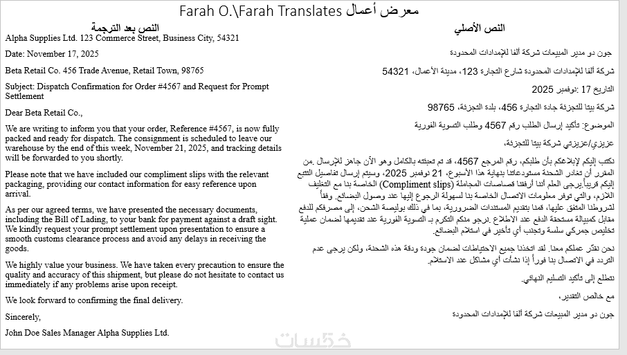 الترجمة للمراسلات التجارية بجودة عالية وبواسطة مترجم خبير سيحسن التواصل مع شركائك الدوليين ويساهم في ازدهار شركتك\عملك الخاص