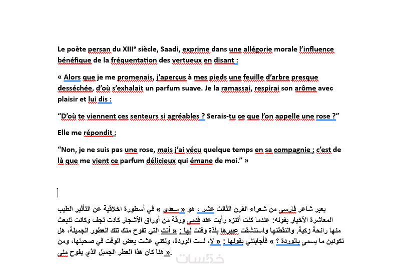 ترجمة النصوص من الفرنسية الى العربية والعكس