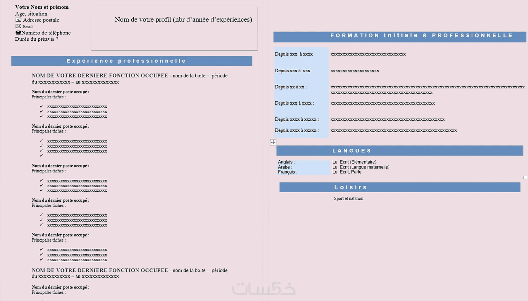 1/ سوف اقوم بترجمه سيرتك الذاتيه من العربي الى الفرنسي بصيغة احترافيه