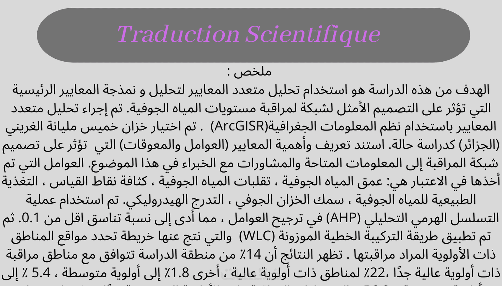 أنا أتحدث اللغة العربية ، وقد نشأت وأنا أدرس الفرنسية في المدرسة وأتعلمها في المنزل. لذلك يمكنني تقديم ترجمة عربية-فرنسية بجودة عالية.