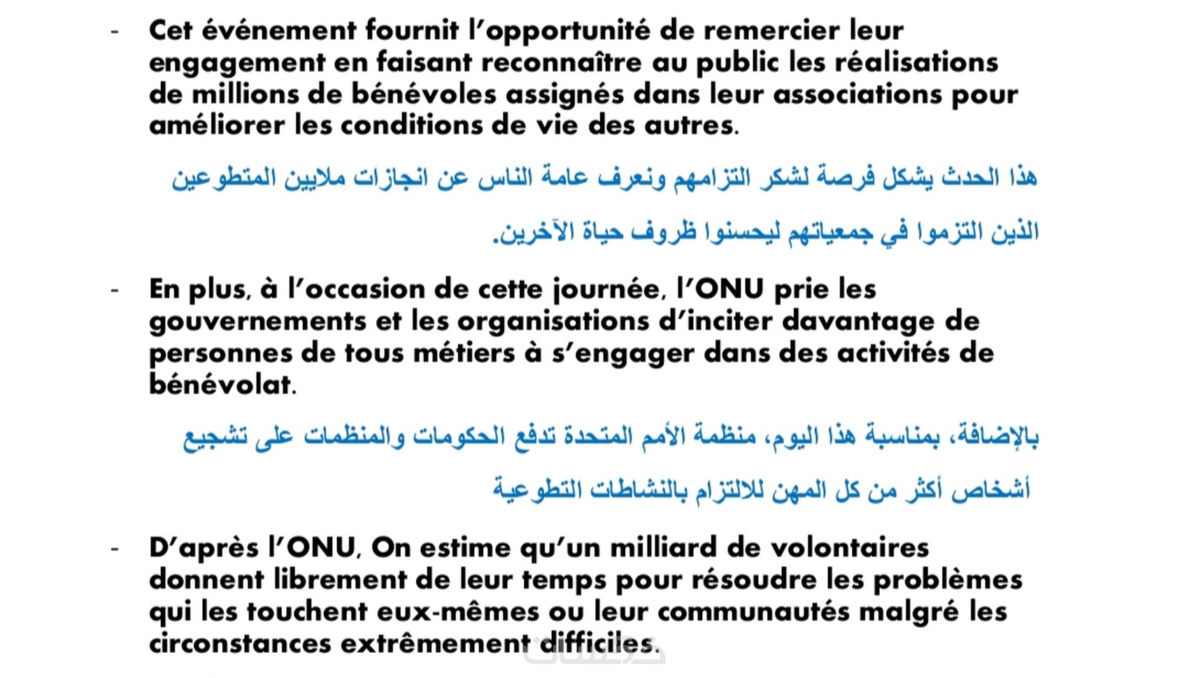 - ترجمة 1200 كلمة من الفرنسية إلى العربية أو العكس مع تدقيق لغوي وتنسيق الملفات تبعا لحجم الخط وتباعد الأسطر مع مراعاة اتجاهات الكتابة بعد الترجمه بين اللغتين.