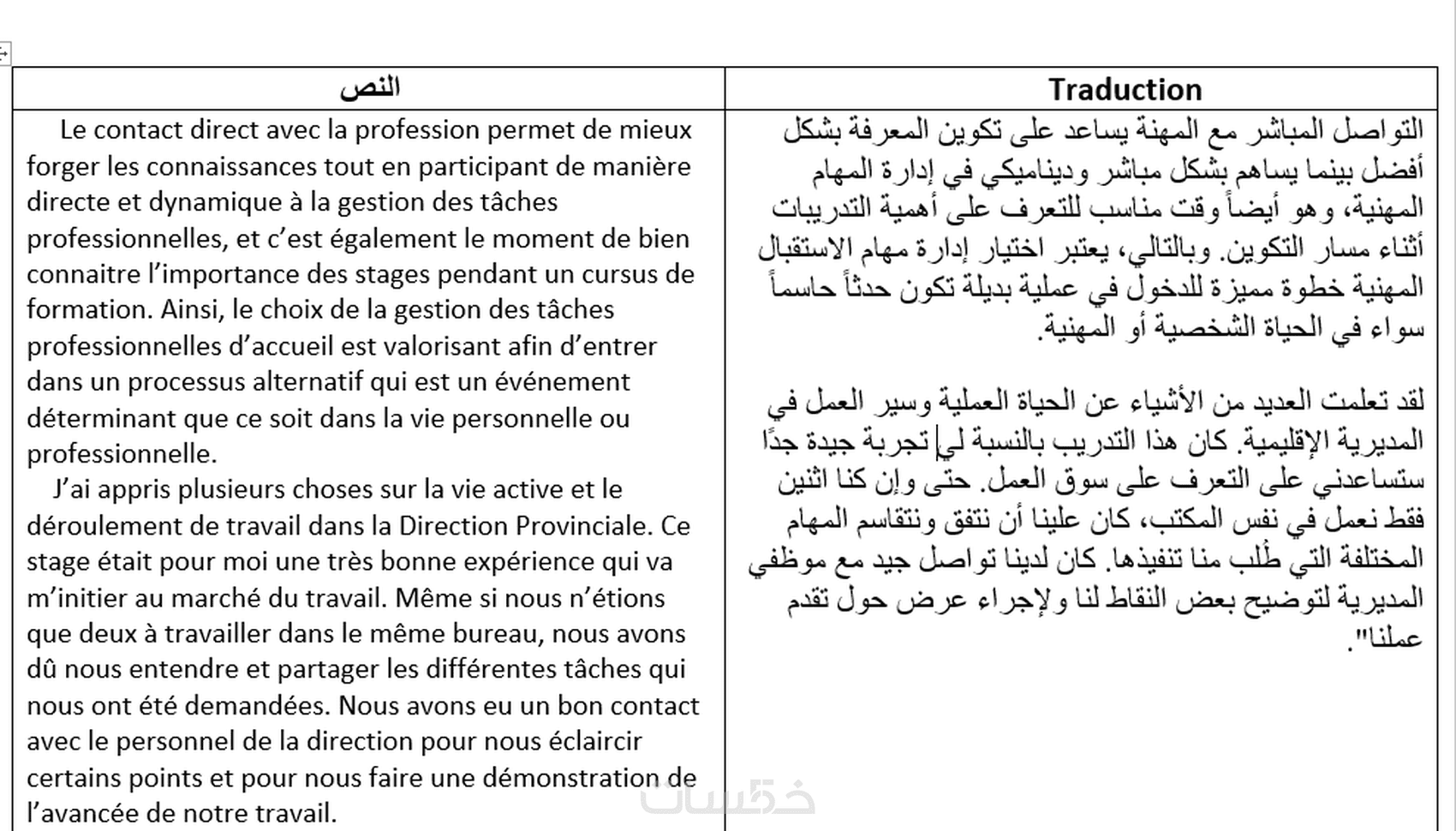 ترجمة جميع انواع النصوص (أبحاث، مقالات علمية أو أدبية، نصوص قانونية، اقتصاد، تكنولوجيا، مقالات طبية، وغيرها) من الفرنسية الى العربية او العكس بطريقة احترافية . في وقت وجيز.ثمن الخدمة يشمل ترجمة نص او مقال يتكون من 800 كلمة.