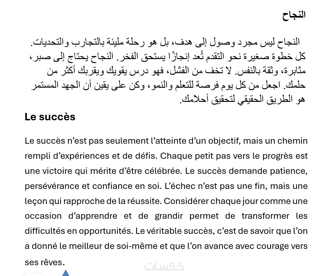 الفرنسية والعكس، بأسلوب دقيق يحافظ على المعنى والسياق الثقافي للنص.