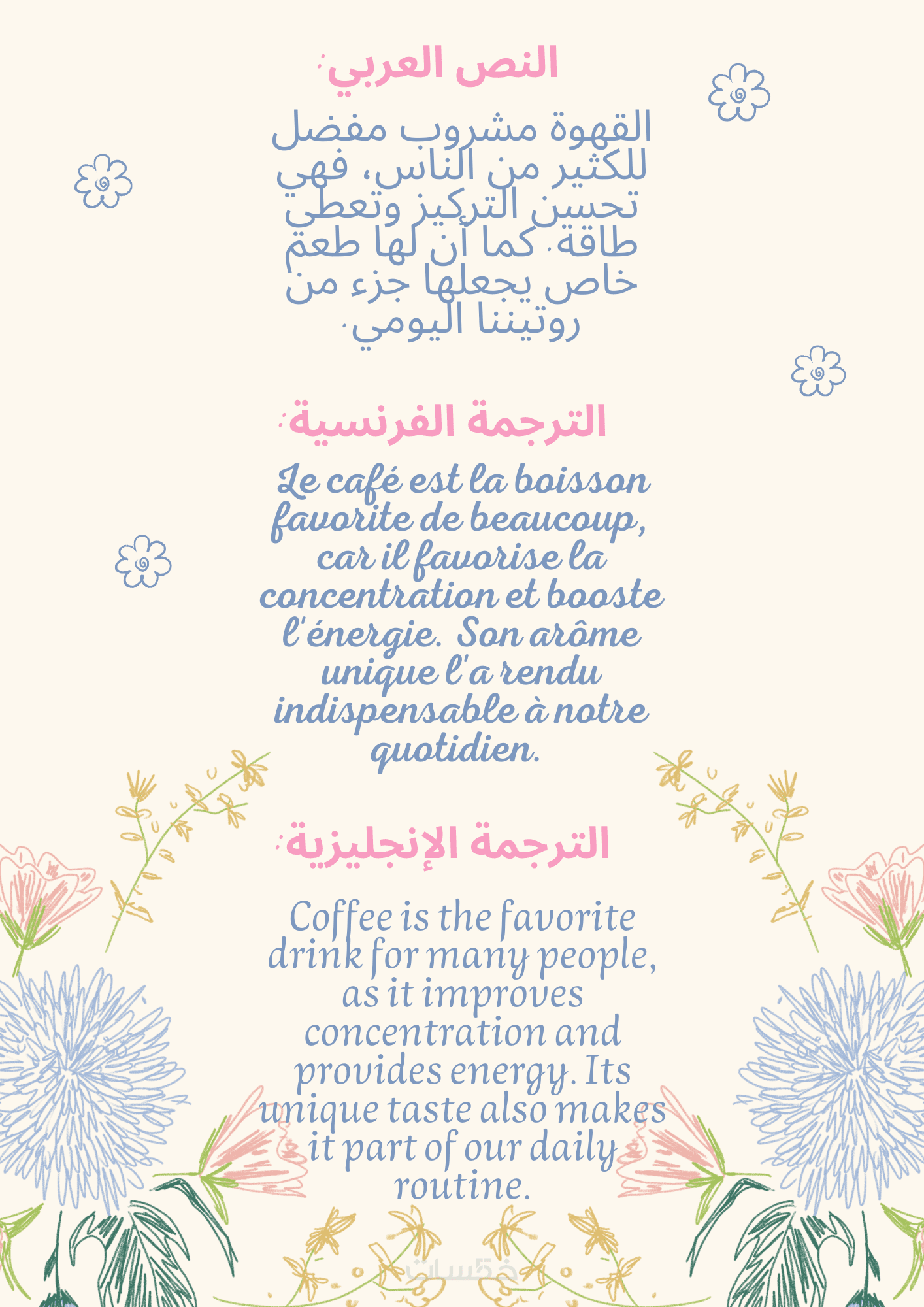 أقدّم ترجمة دقيقة للنصوص العامة بين العربية والفرنسية والإنجليزية، مع التركيز على وضوح الأسلوب وسلاسة اللغة. الخدمة تشمل ترجمة حتى 300 كلمة، مع مراجعة شاملة للتأكد من خلو النص من الأخطاء، وتسليم العمل في الوقت المتفق عليه.
