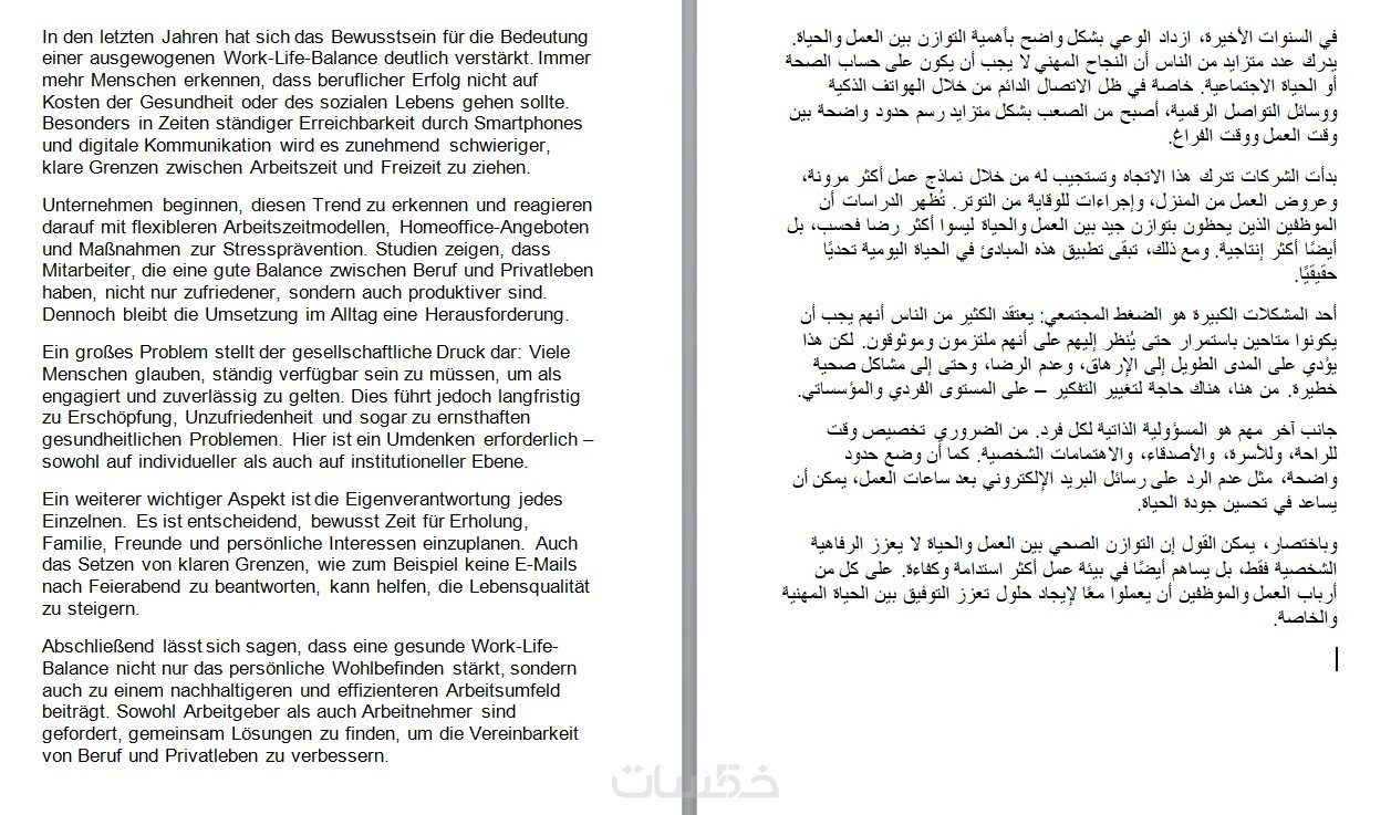 سأقوم بترجمة النصوص من الألمانية إلى العربية أو العكس بدقة واحترافية وبلغة سليمة وخالية من الأخطاء، مع الحفاظ على المعنى والأسلوب الأصلي.