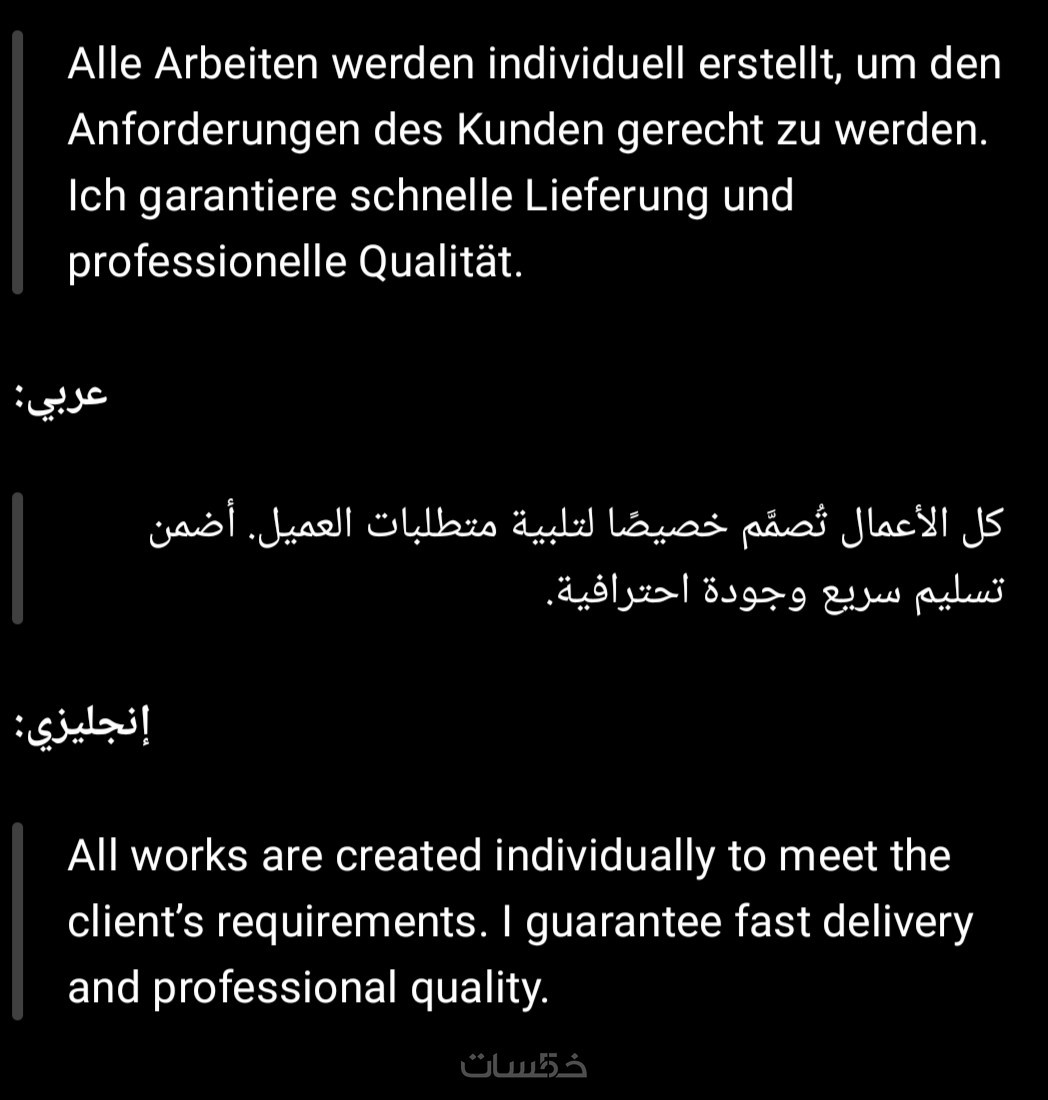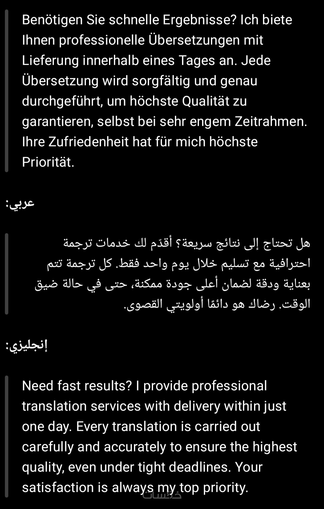 ترجمة احترافية لعدد 200 كلمة من العربية إلى الالمانيه او الانجليزيه أو العكس.