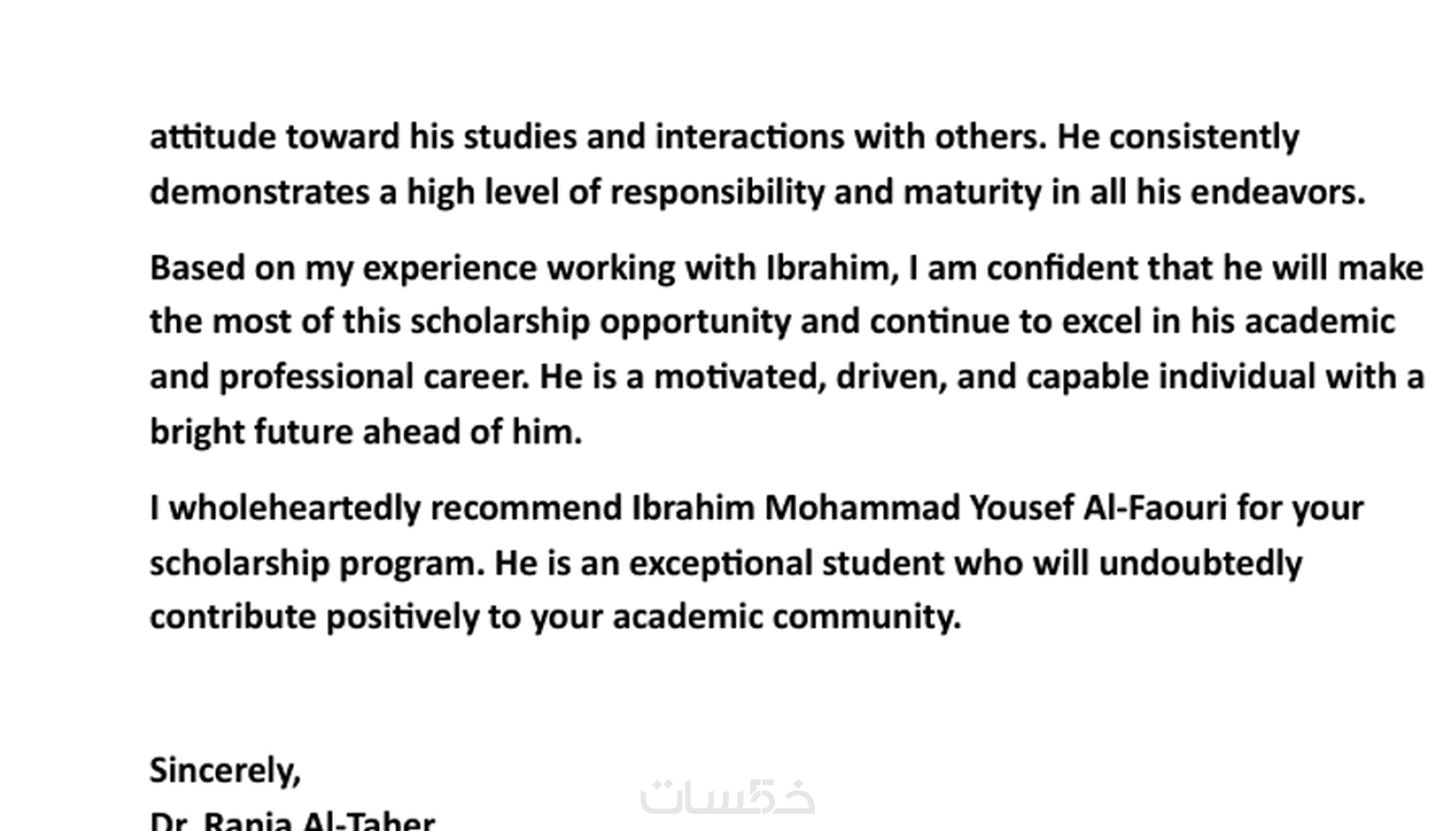 نعلم ان العديد من الاشخاص لا يستطيعون ان يتواصلوا مع الاشخاص الذين قاموا بتدرسيهم من اجل كتابة خطاب التوصية وانت الان في المكان الصحيح ٍاقوم بكتابة خطاب التوصية Recommendation letter