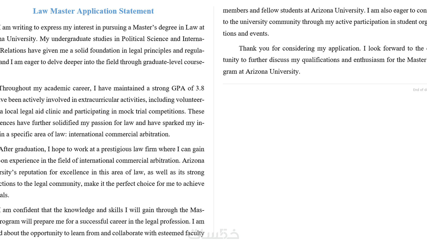 800 كلمة (خطاب شخصي لبرنامج الماجستير).
