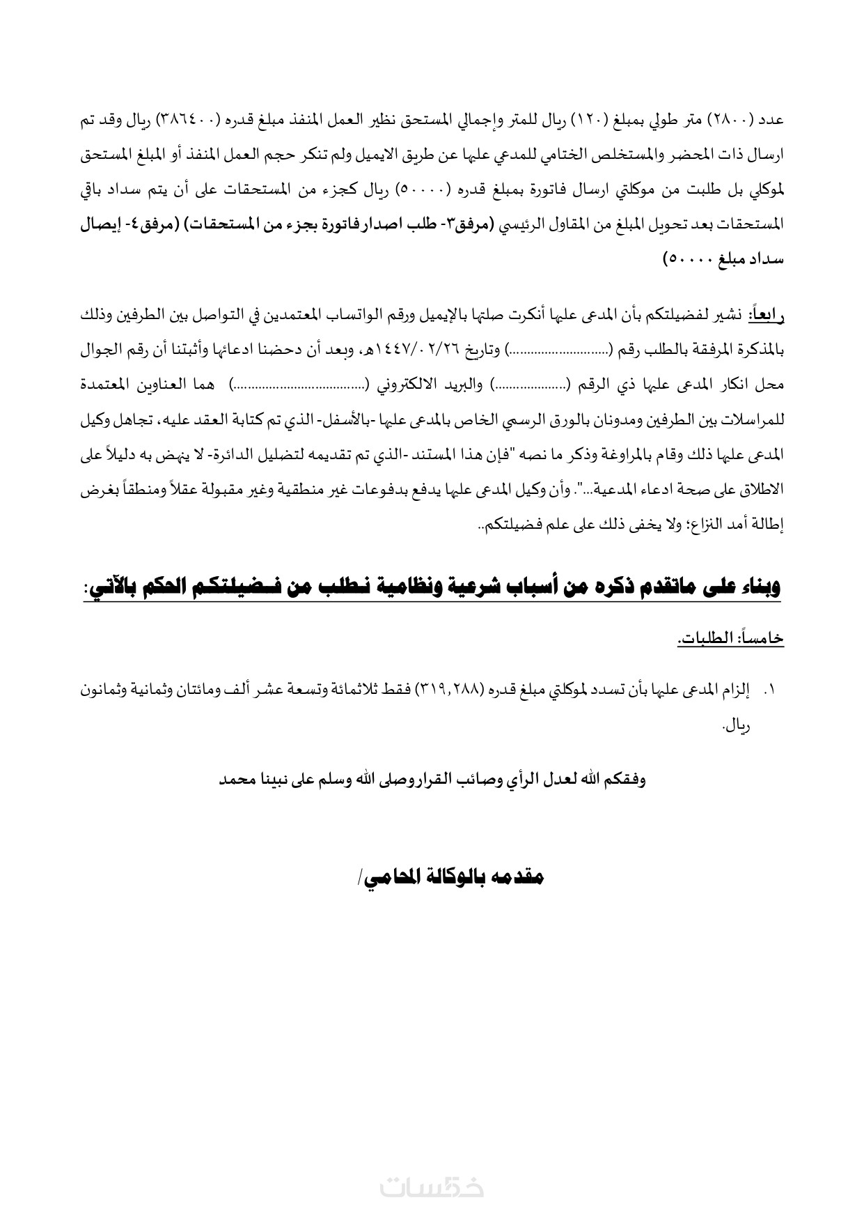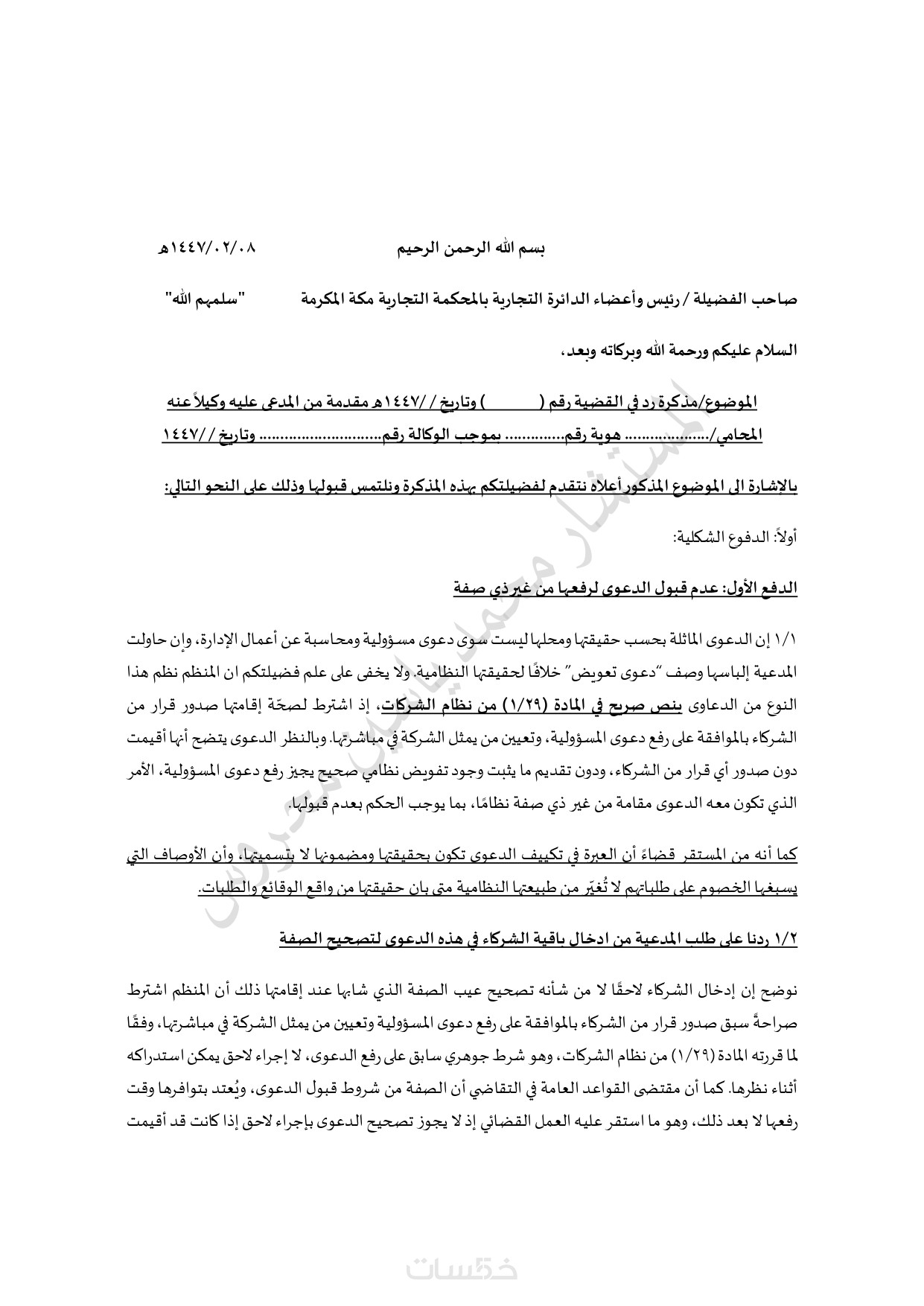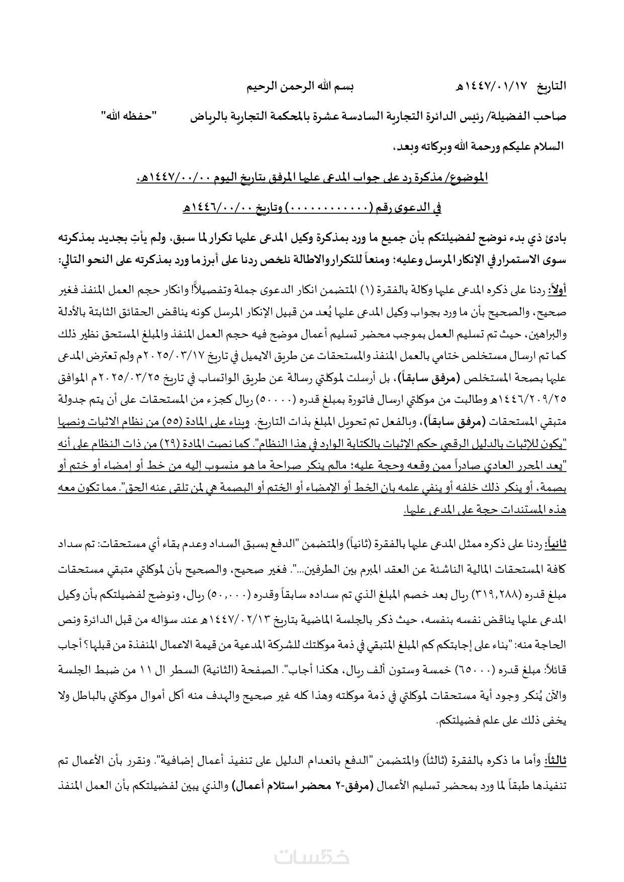 - صحيفة دعوى عدد 500 كلمة
