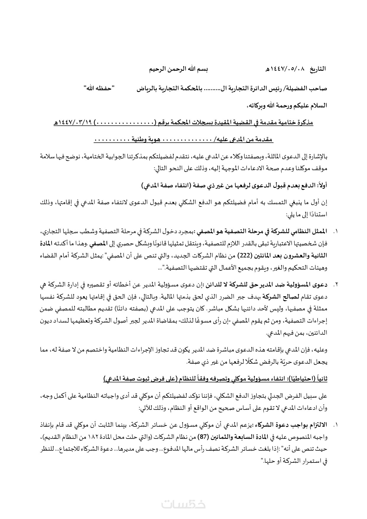 تقديم كتابة قانونية لجميع القضايا السعودية بطريقة احترافية