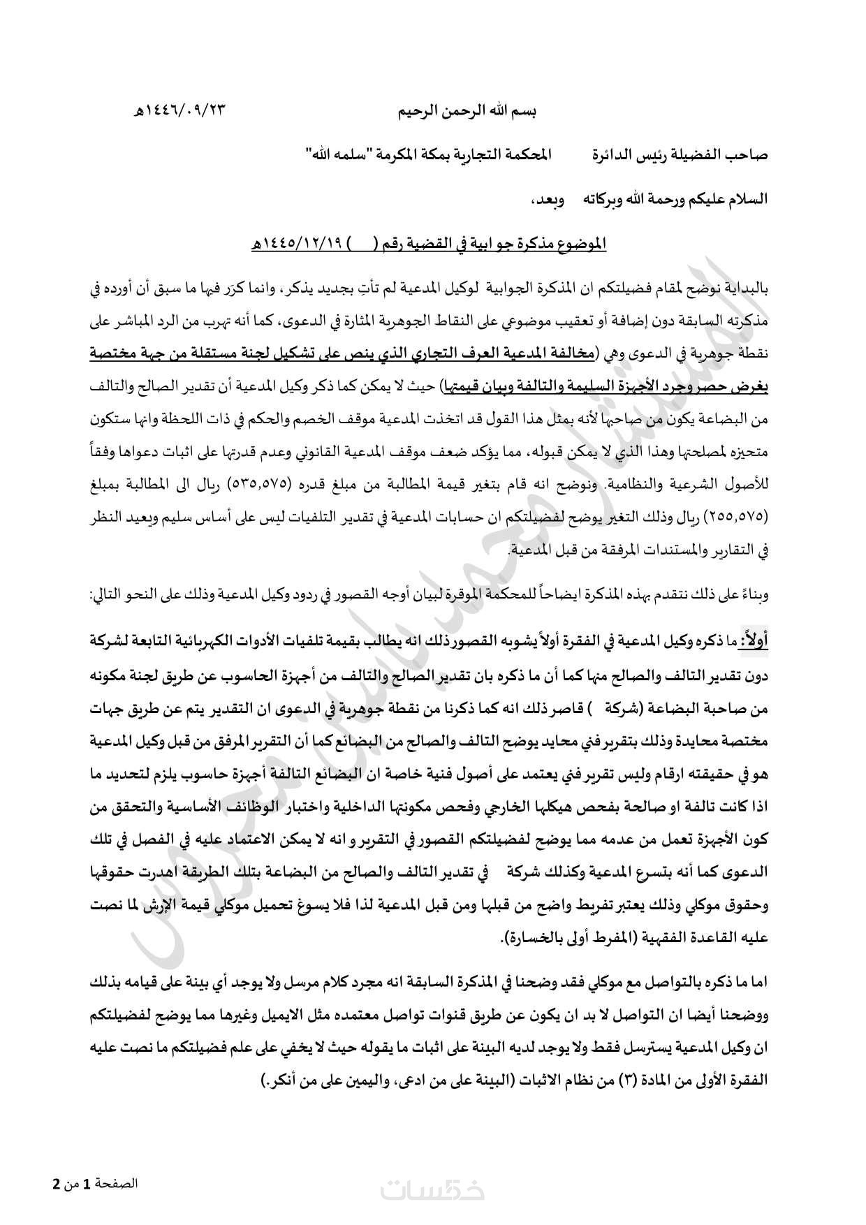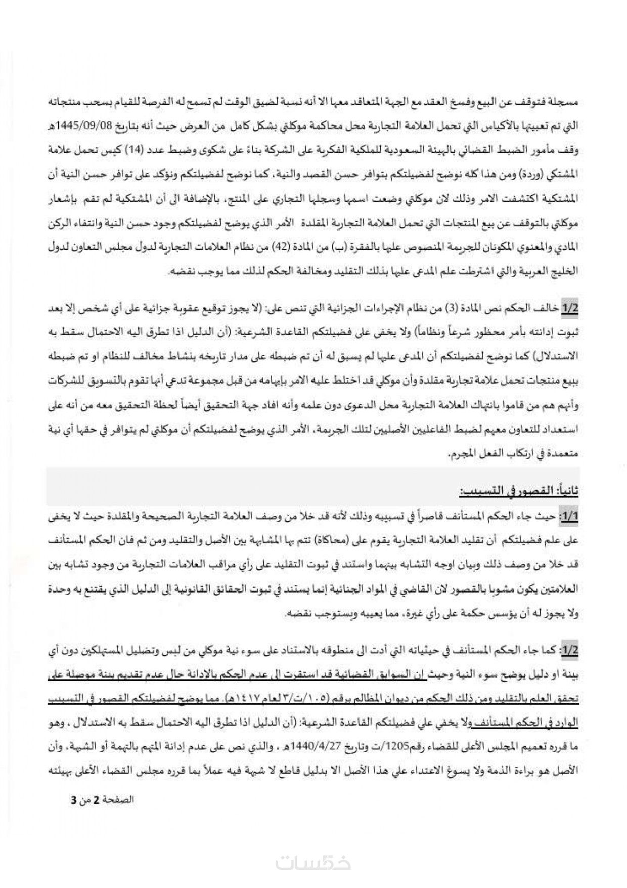 صياغة مذكرة استئناف (٣ صفحات) عدد 1500 كلمة