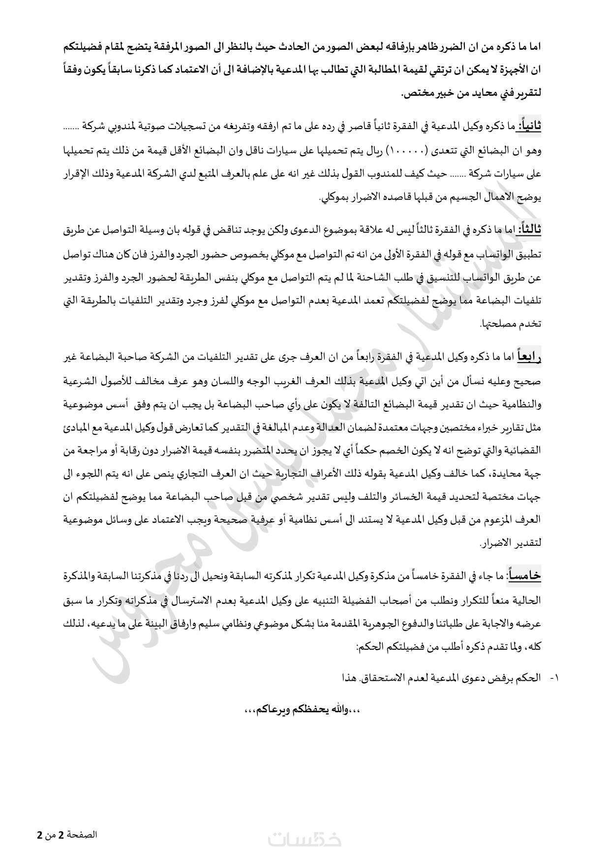 صياغة مذكرة ودعاوي النقض (٦صفحات) عدد 1000 كلمة