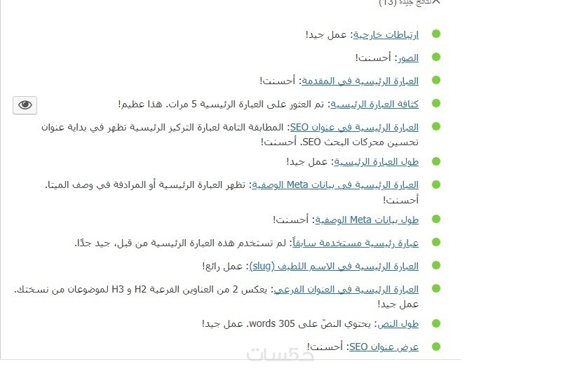 6- يتم فحص المقالة على اداة Yoast لضمان توافقها مع محركات البحث سيو