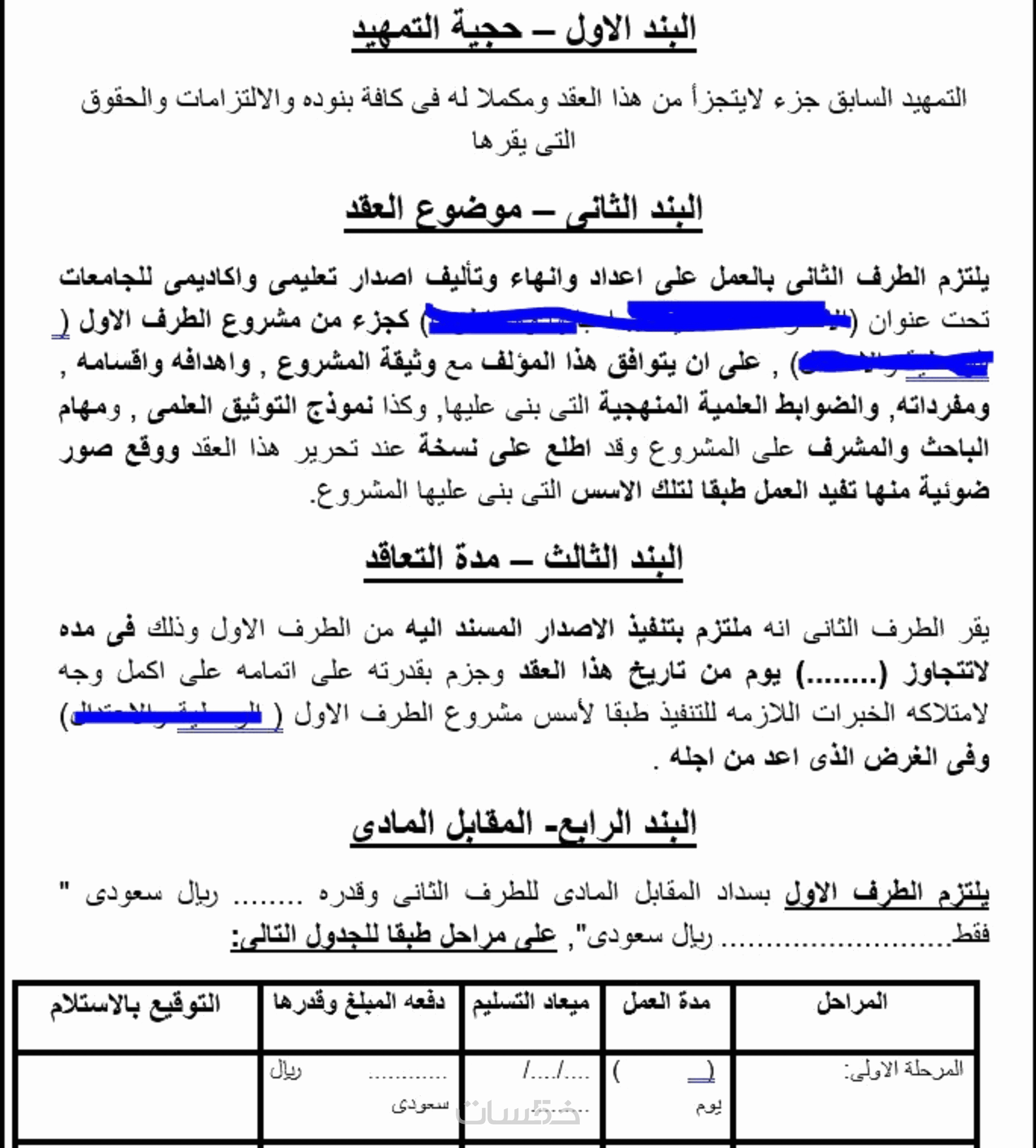 عقد باللغة العربية 2000 كلمة