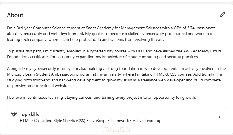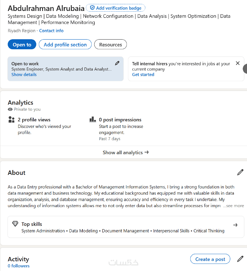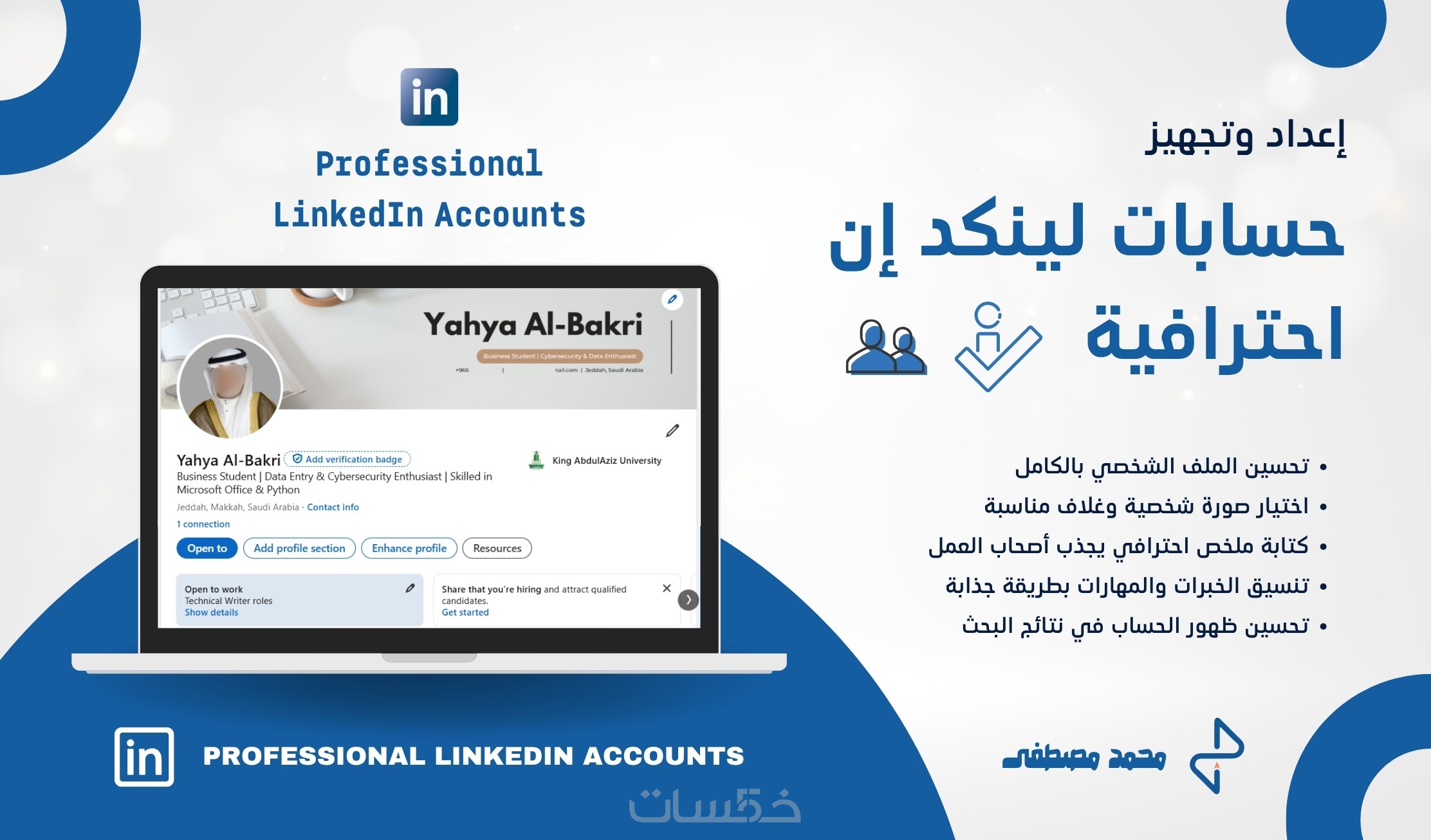 تصميم وكتابة سيرة ذاتية ونبذة مميزة لحساب لينكدان LinkedIn