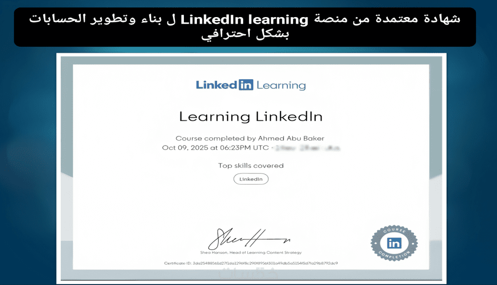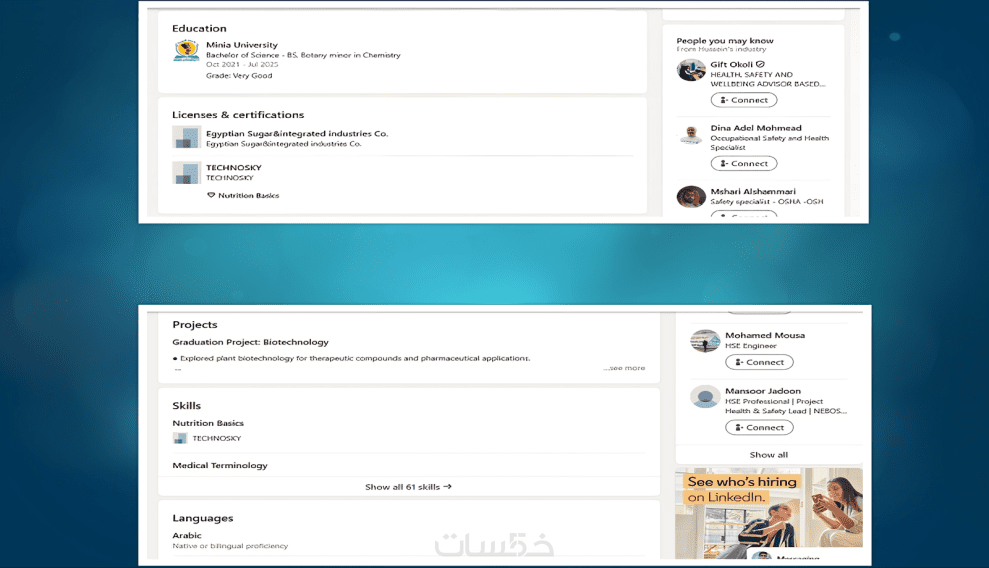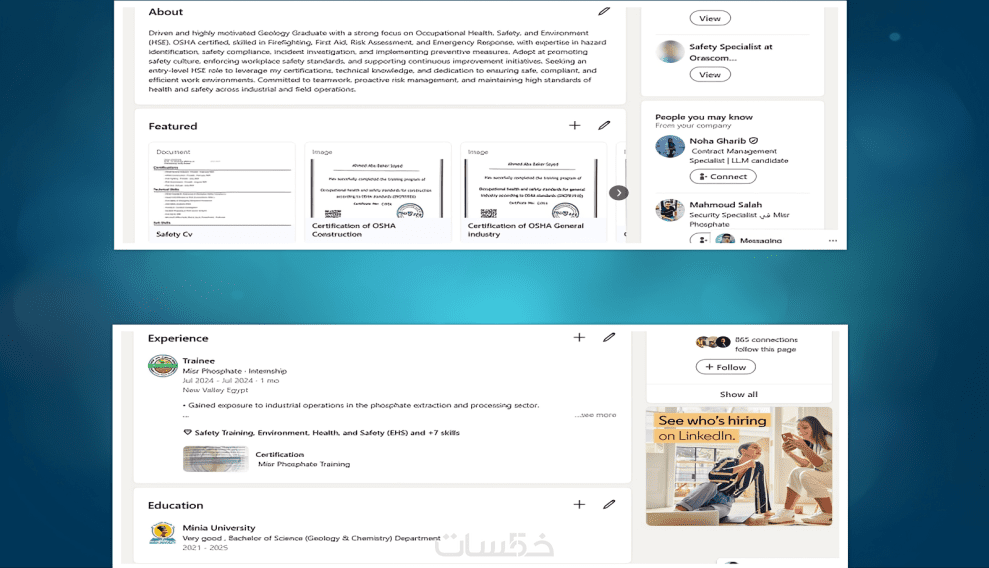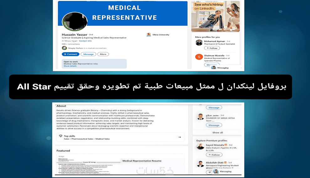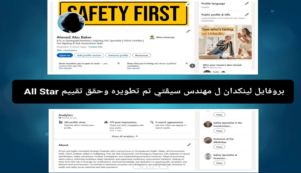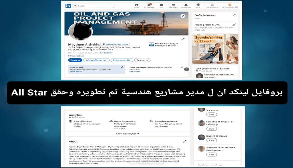 ملف LinkedIn متكامل باللغة الإنجليزية أو العربية وفق ما تطلب وجاهز للعرض أمام أصحاب العمل.