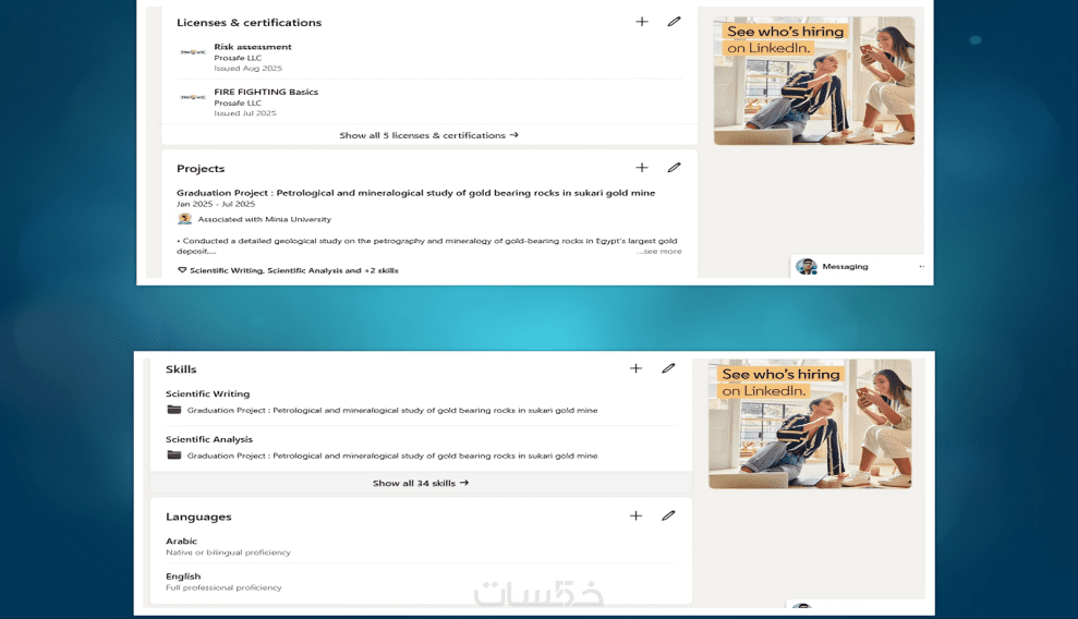 كتابة البروفايل كامل باللغتين (العربية والإنجليزية) بشكل احترافي.