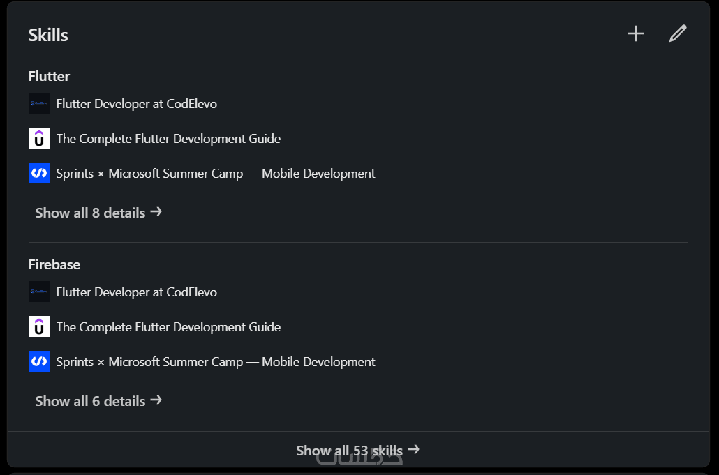 - إضافة مهارات مدروسة ومتوافقة مع مجالك وسوق العمل.
