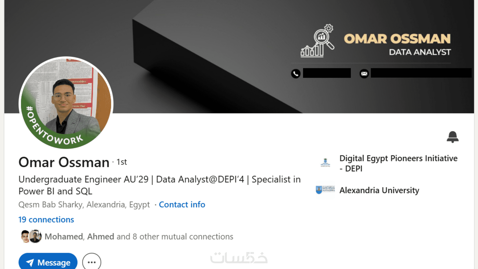 أنا متخصص في إنشاء وتحسين بروفايلات LinkedIn باحترافية، وأقدّم لك تطويرًا كاملًا لحسابك يشمل: