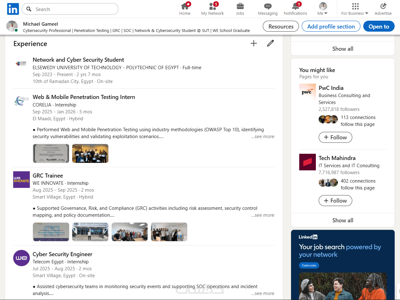 أنا سأساعدك في تحسين حسابك بطريقة احترافية لزيادة فرص ظهورك أمام مسؤولي التوظيف وتحسين فرص قبولك في الوظائف.