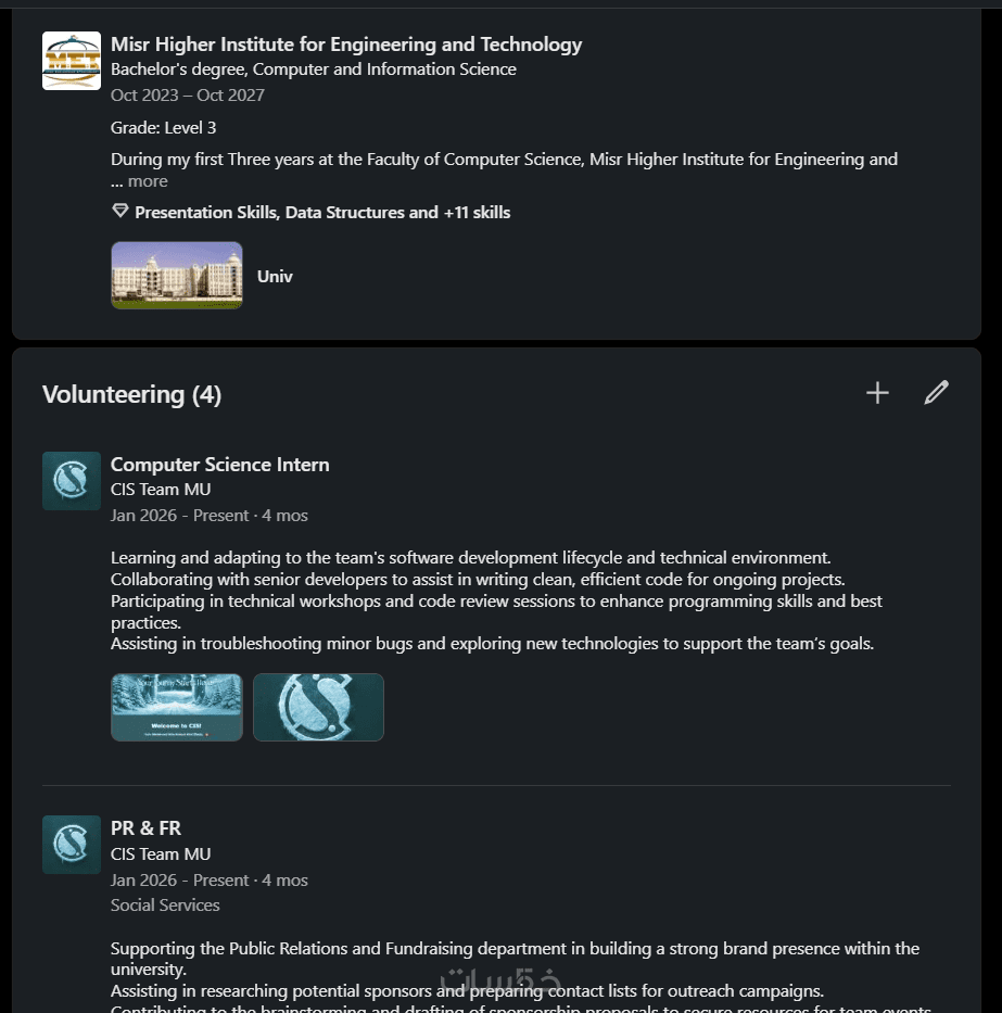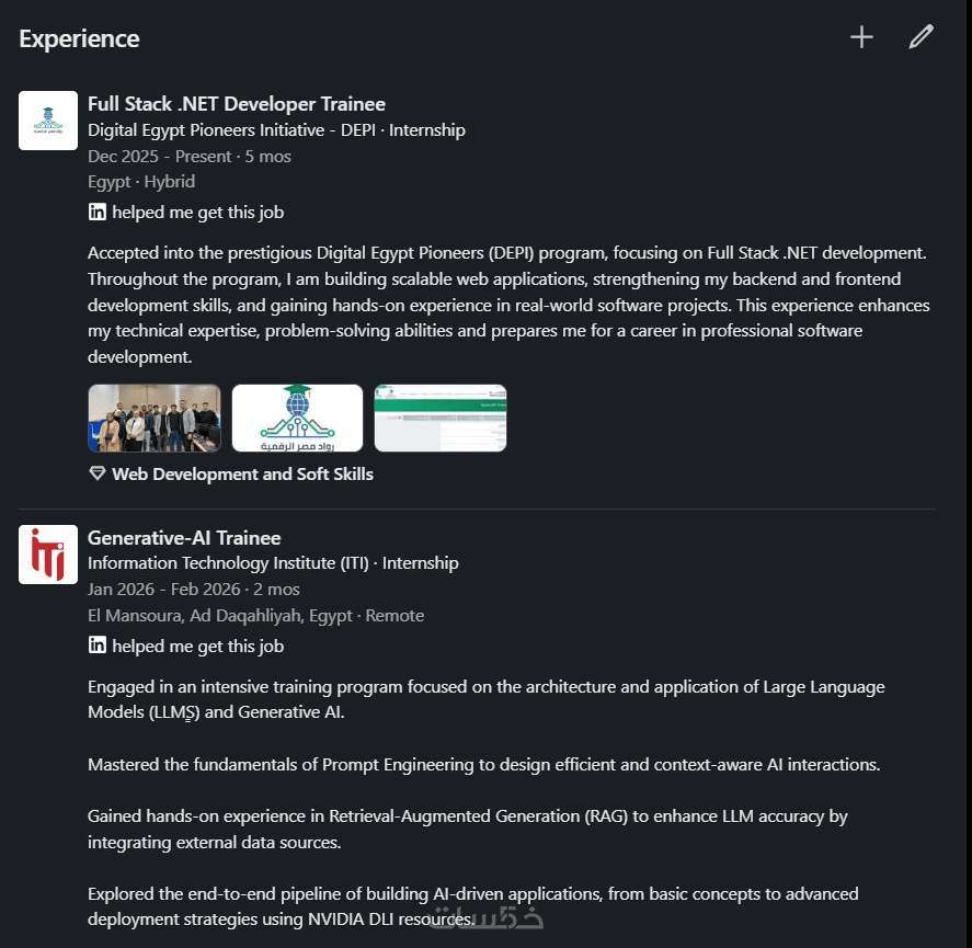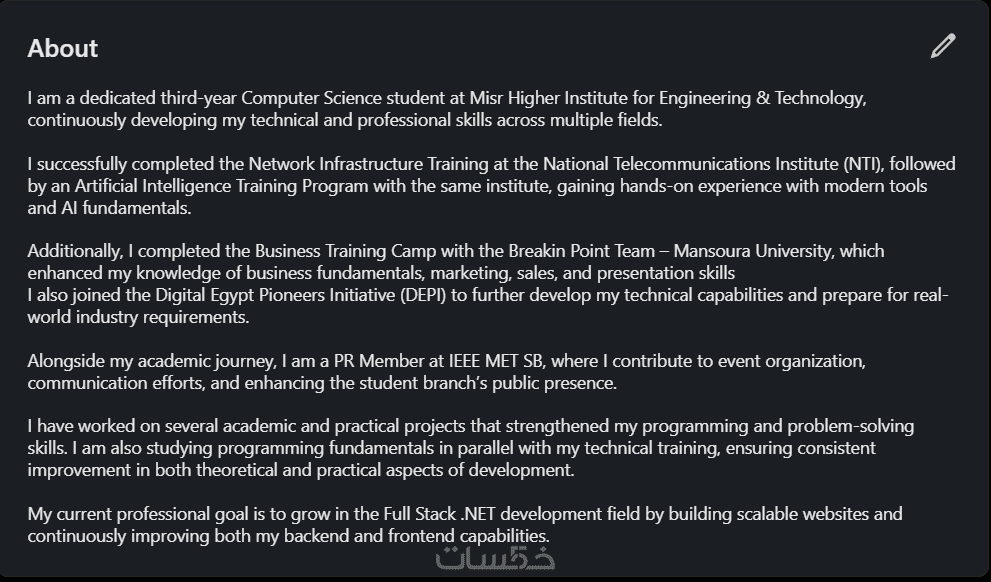 لأنني أتابع تحديثات LinkedIn المستمرة وأفهم كيف يفكر مسؤولو التوظيف (HR) وما هي الكلمات التي يبحثون عنها. هدفنا ليس فقط تعبئة بيانات، بل "صناعة هوية مهنية" تفتح لك أبواب الفرص.