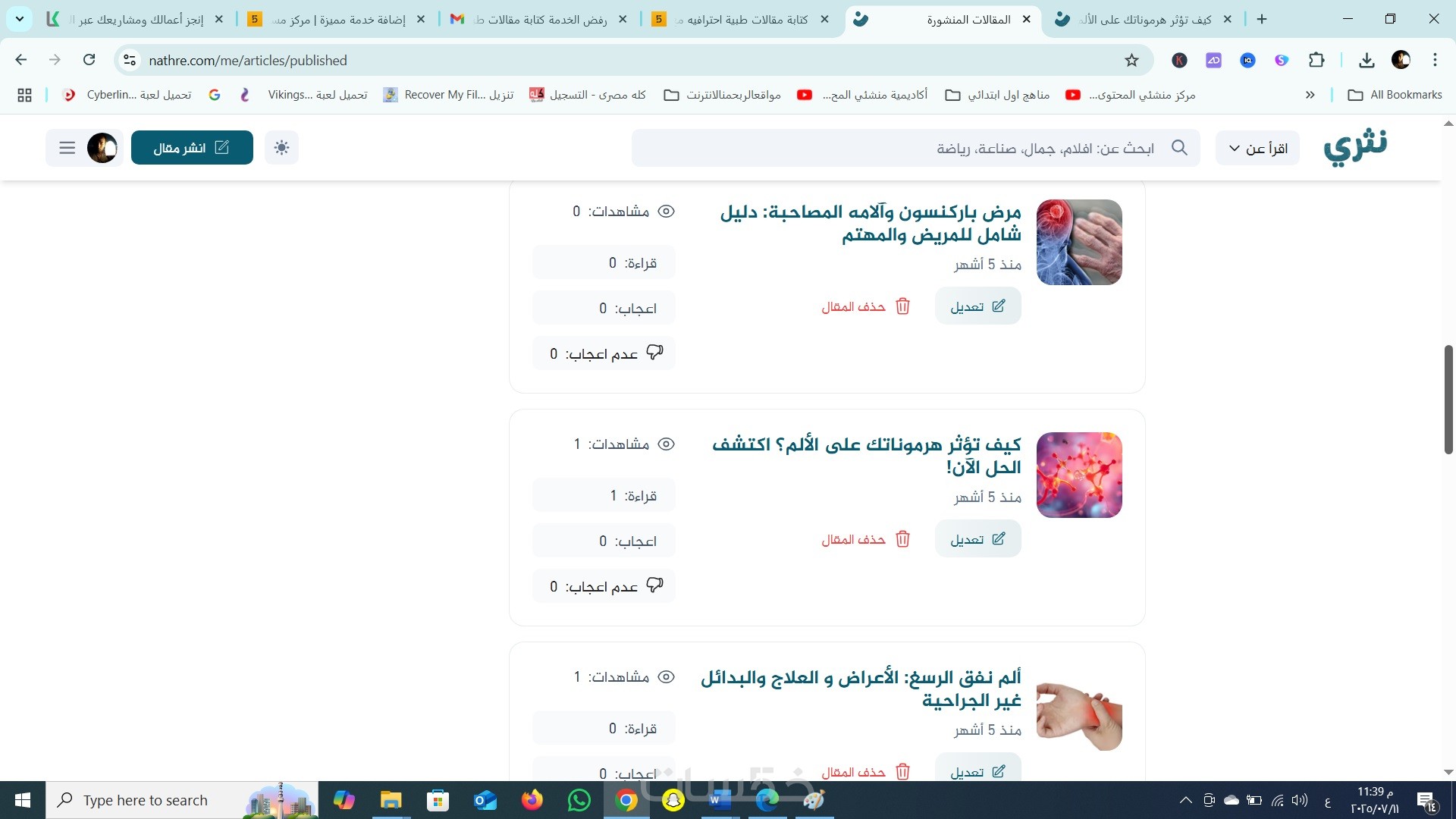 - المقالات المختصة بالطب والصحة والأمراض والأدوية.