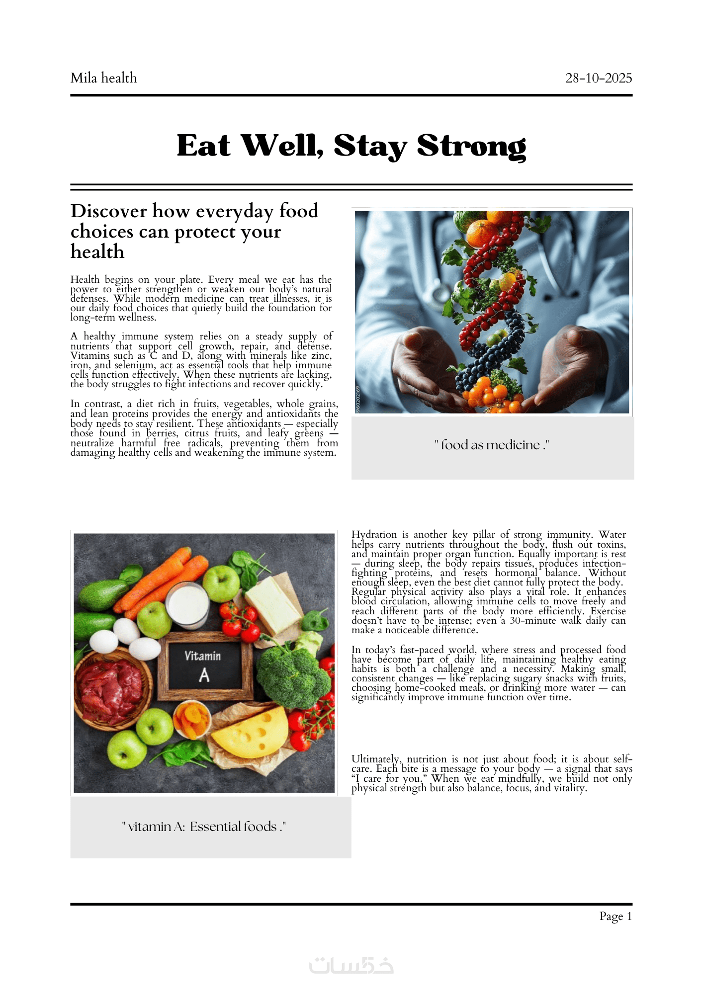 - نصائح ومعلومات حول الأغذية الصحية والنظام الغذائي المتوازن والتعامل مع مشاكل التغذية.