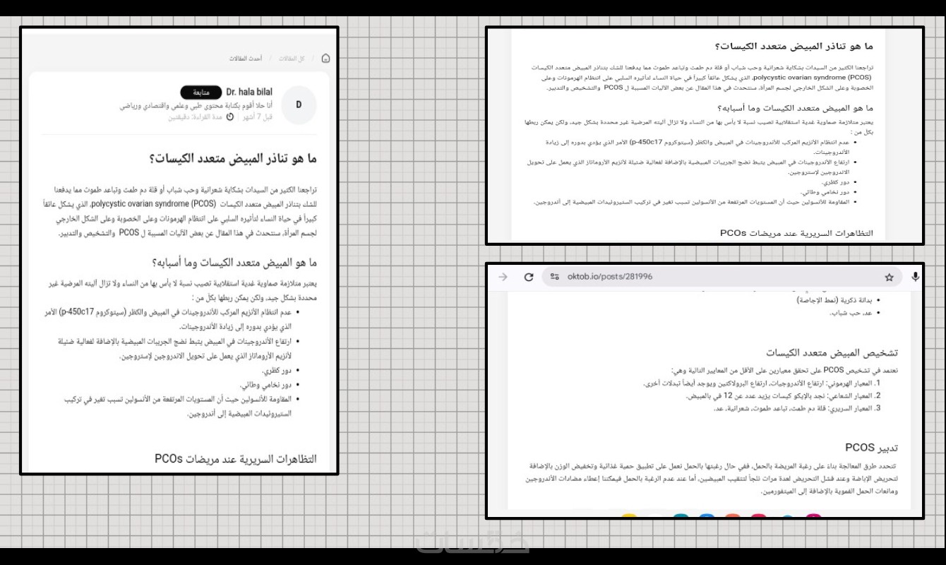 محتوى طبي وصحي مخصص لمتطلبات وسائل التواصل الاجتماعي بتقديم المعلومات بطرق تواصلية وجذابة تناسب هذه المنصات مثل الرسوم التوضيحية والفيديوهات التوعوية والمنشورات النصية واقتباسات تحفيزية تتعلق بالصحة.