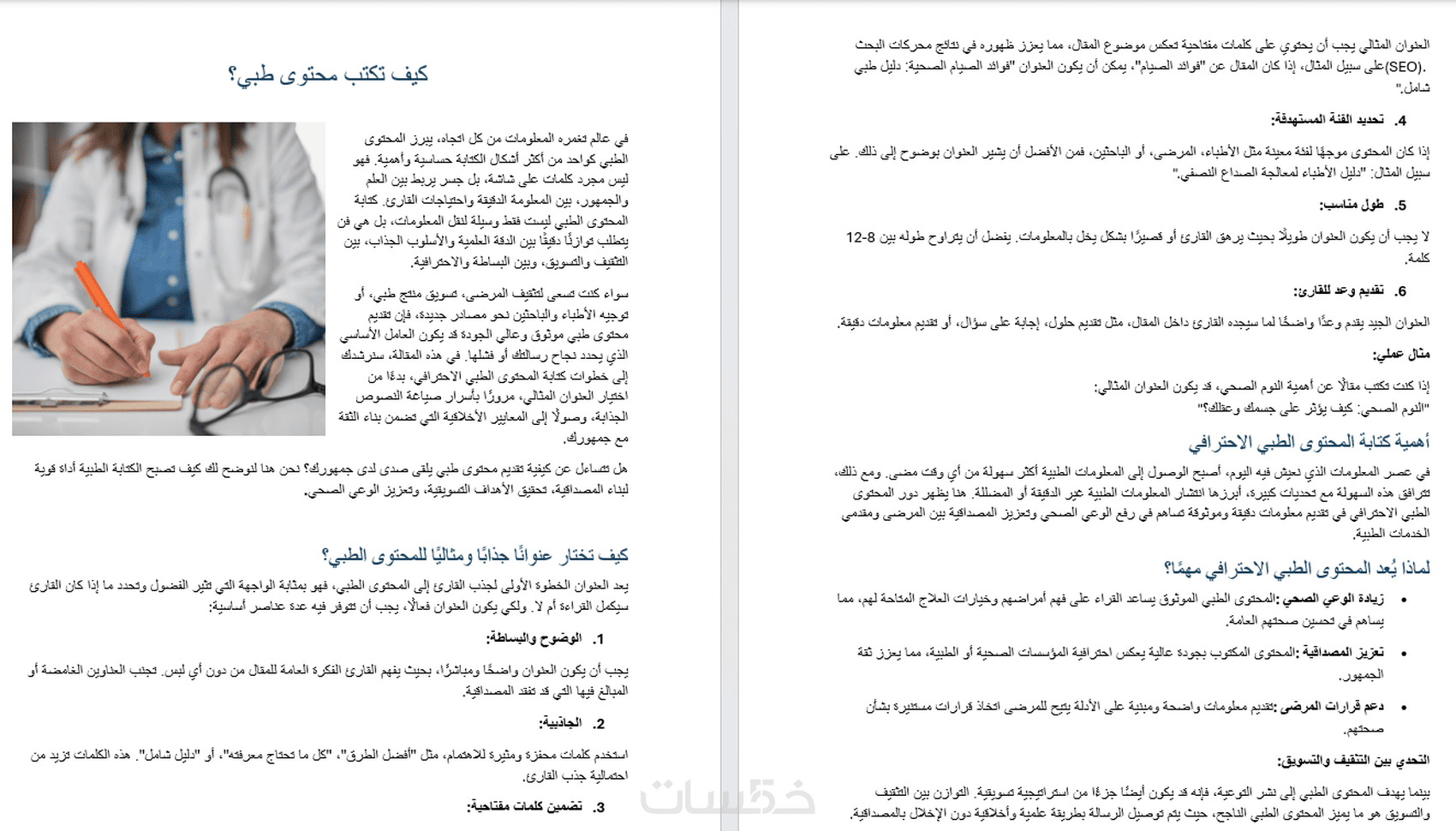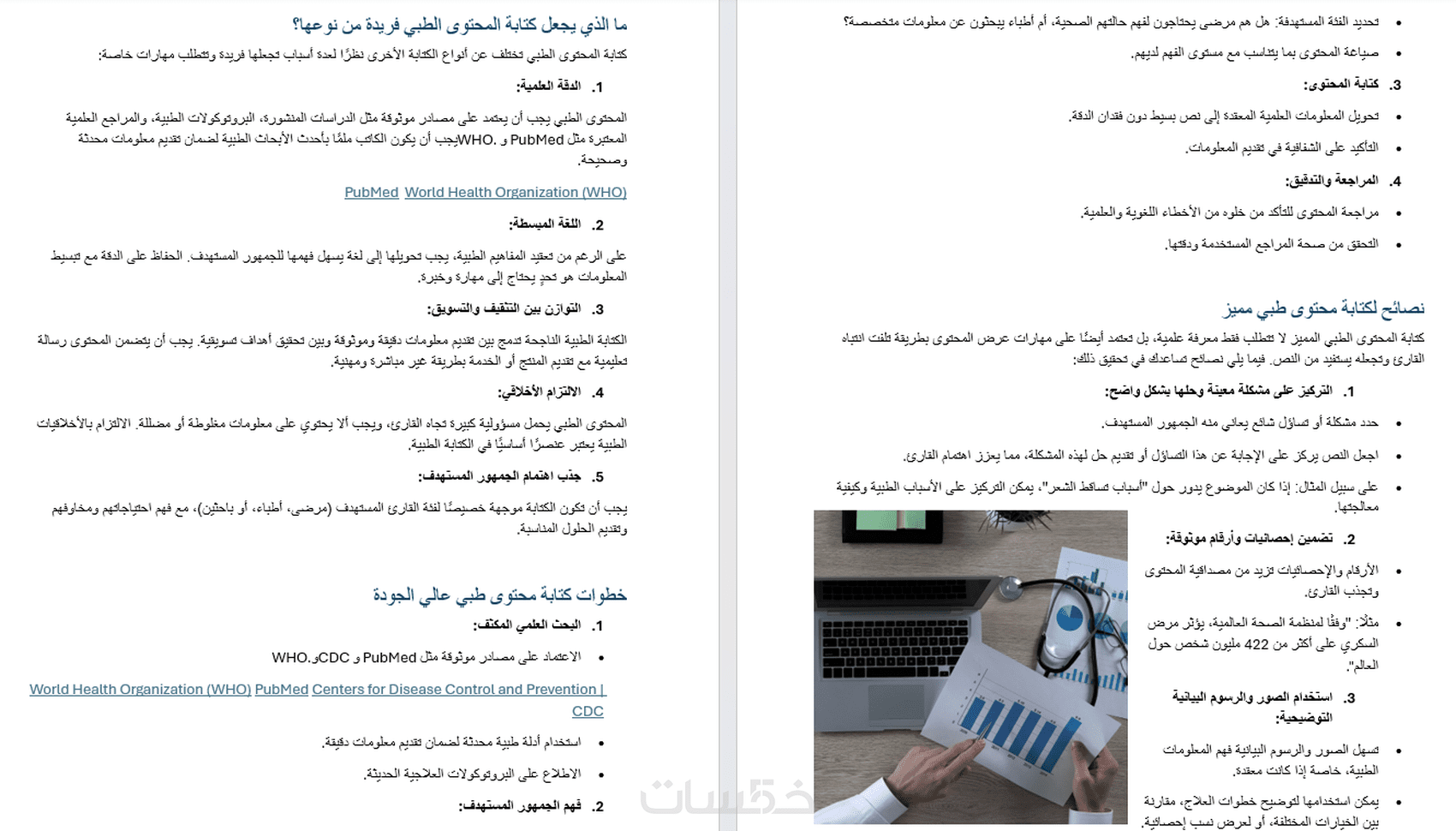 - طريقة مشوقة و سهلة الفهم باللغتين العربية والإنجليزية في جميع المجالات و التخصصات الطبية للمواقع الطبية او لغيرها