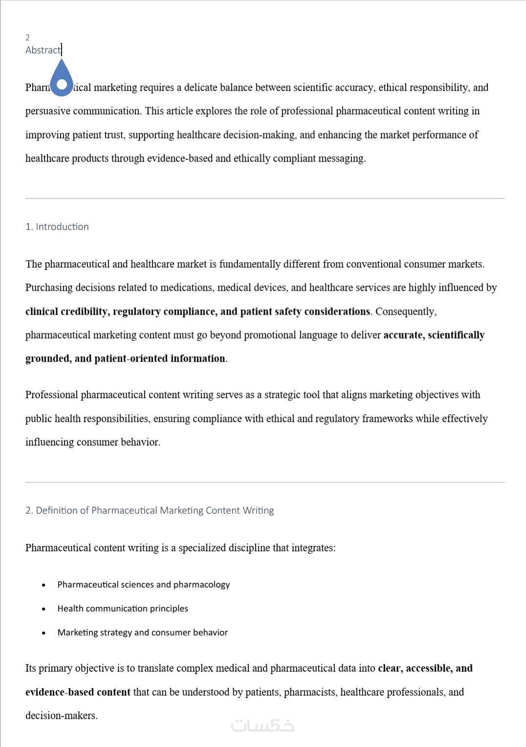أقدّم خدمة كتابة محتوى تسويقي دوائي احترافي مبني على خلفية صيدلانية ومعرفة تسويقية وإدارية، مع الالتزام بالدقة العلمية وأخلاقيات التسويق الصحي.
